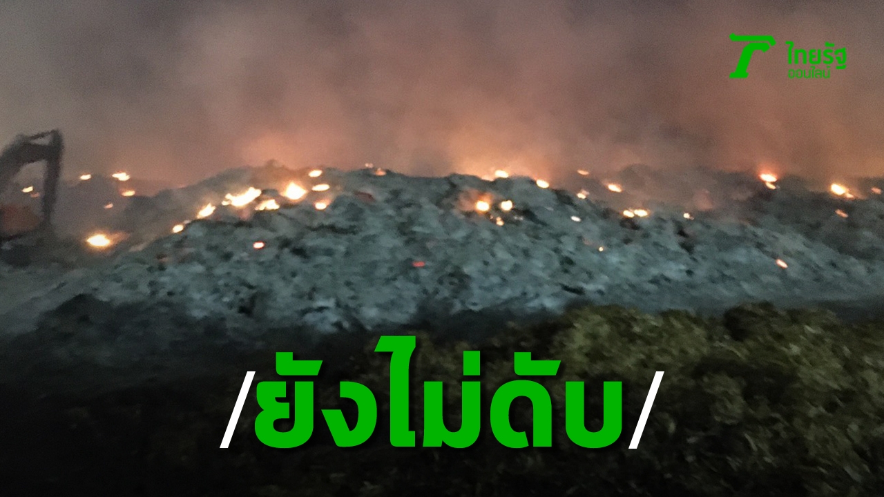 เจ้าหน้าที่ดับเพลิงยังคงฉีดน้ำดับไฟที่ลุกไหม้ชานอ้อยที่โรงงานน้ำตาลใน จ.กาฬสินธุ์ มาตั้งแต่เมื่อวันศุกร์ โดยพยายามฉีดสกัดไม่ให้ไฟลามเข้าใกล้โรงงาน