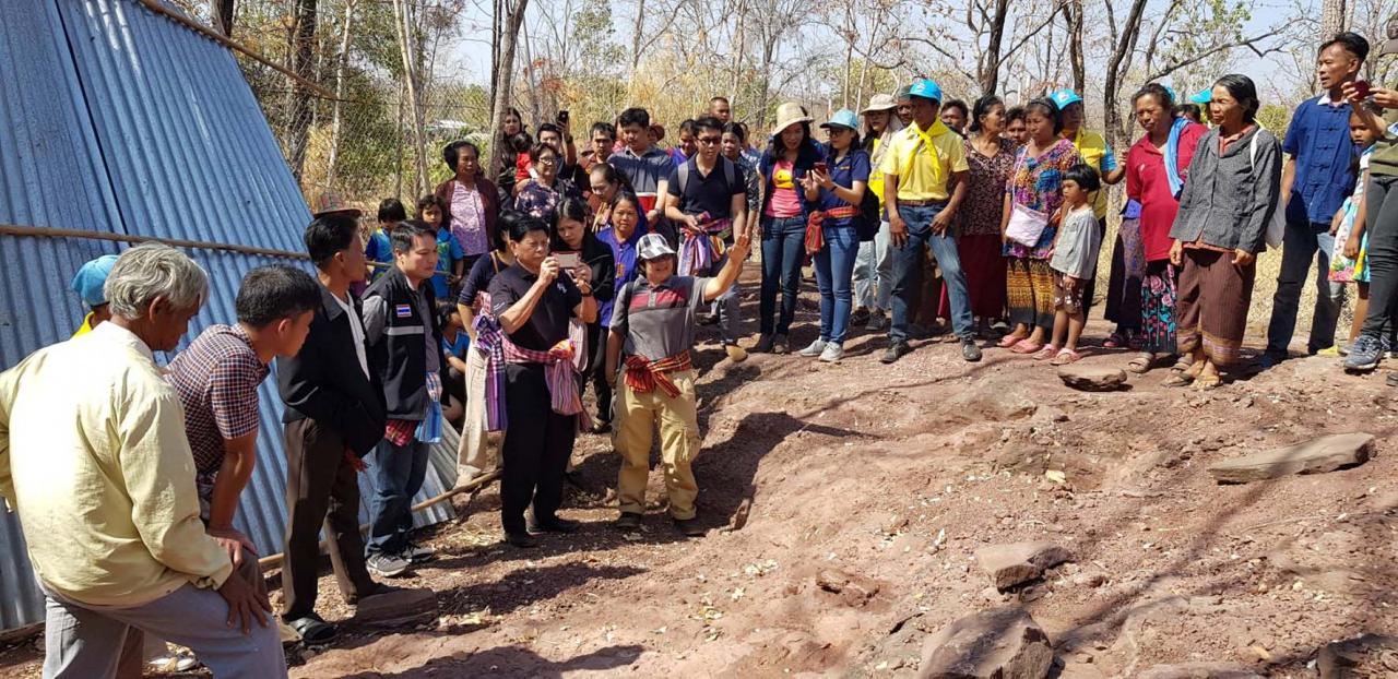 เมื่อวันที่ 22 ก.พ.ที่ผ่านมา ที่วัดสวนป่าสายชล บ้านห้วยหินเกิ้ง ม.11 ต.โพนเพ็ก อ.มัญจาคีรี จ.ขอนแก่น ศาสตราจารย์ ดร.สนิท อักษรแก้ว ประธานสภา พัฒนาเศรษฐกิจและสังคมแห่งชาติ พร้อมด้วย น.ส.ศศอร ขันสุภา นักธรณีวิทยาชำนาญการ พิพิธภัณฑ์สิรินธร จ.กาฬสินธุ์ สำนักงานทรัพยากรธรณีเขต 2 กรมทรัพยากรธรณี และอาจารย์สาขาวิทยาศาสตร์สิ่งแวดล้อม คณะวิทยาศาสตร์ มหาวิทยาลัยขอนแก่น ลงพื้นที่พบปะพูดคุยกับชาวบ้านในพื้นที่ หลังจากที่มีการพบซากไดโนเสาร์ หรือ ฟอสซิล ในที่ดินของชาวบ้านแล้วมีการนำไปวิจัยร่วม 10 ปี ไม่มีการนำมาคืน ไม่มีการต่อยอดเพื่อพัฒนาเป็นแหล่งท่องเที่ยว และแหล่งเรียนรู้ จนชาวบ้านต้องออกมาทวงถามกับหน่วยงานที่เกี่ยวข้องโดยมีชาวบ้านกว่า 100 คน มาร่วมฟังและพูดคุยกับคณะ เพื่อความกระจ่างและชัดเจนในประเด็นที่ชาวบ้านข้องใจ
