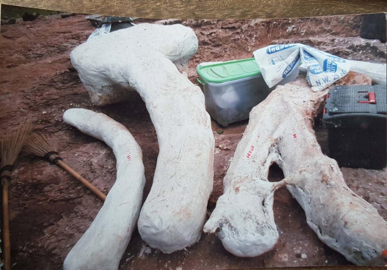 “การทวงถามหากระดูกไดโนเสาร์ ข่าวสารน่าจะถึงหน่วยงานที่เกี่ยวข้อง คณะทั้งหมดจึงลงพื้นที่มาทำความเข้าใจกับชาวบ้านว่า กระดูกไดโนเสาร์ที่นำไปวิจัยนั้น อยู่ในระหว่างการวิจัย อีกทั้งกระดูกไดโนเสาร์นั้น มีพระราชบัญญัติคุ้มครอง จะนำกลับมาในพื้นที่ได้แต่อาจจะเป็นชิ้นส่วนจำลองเท่านั้น ส่วนชิ้นส่วนของจริง หากการวิจัยเรียบร้อยจะนำไปจะเก็บที่พิพิธภัณฑ์สิรินธร จ.กาฬสินธุ์ แต่ในหลุมที่ขุดพบนั้น จะร่วมกันพัฒนาเป็นแหล่งเรียนรู้และแหล่งท่องเที่ยวของจังหวัดขอนแก่นในลำดับต่อไป ซึ่งชาวบ้านเข้าใจเป็นอย่างดี”