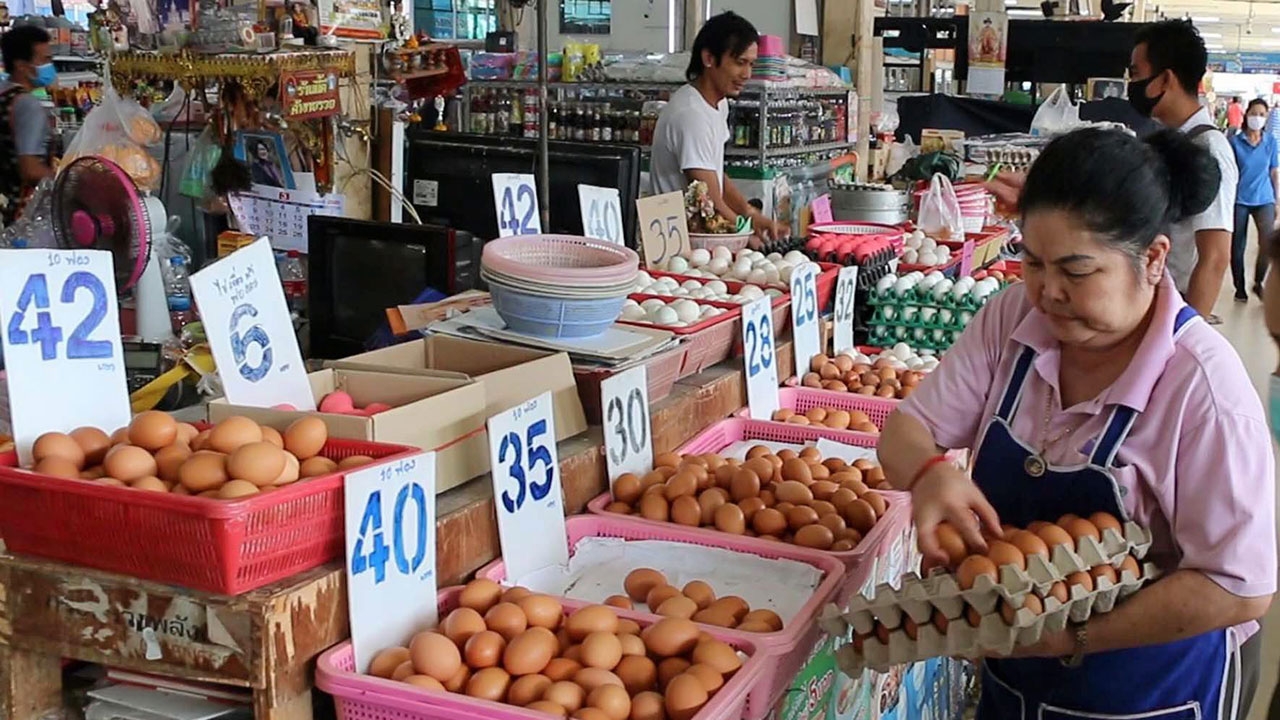ผู้ค้าไข่ไก่ในตลาดบางลำภู เขตเทศบาลนครขอนแก่น กำลังเรียงไข่ไก่เพื่อรอจำหน่ายให้ลูกค้าและพบว่าขณะนี้ไข่ไก่มีการปรับราคาสูงขึ้น เนื่องจากเริ่มขาดตลาดเพราะประชาชนซื้อไว้กักตุน ล่าสุดราคาปรับขึ้นแผงละ 10 บาท.