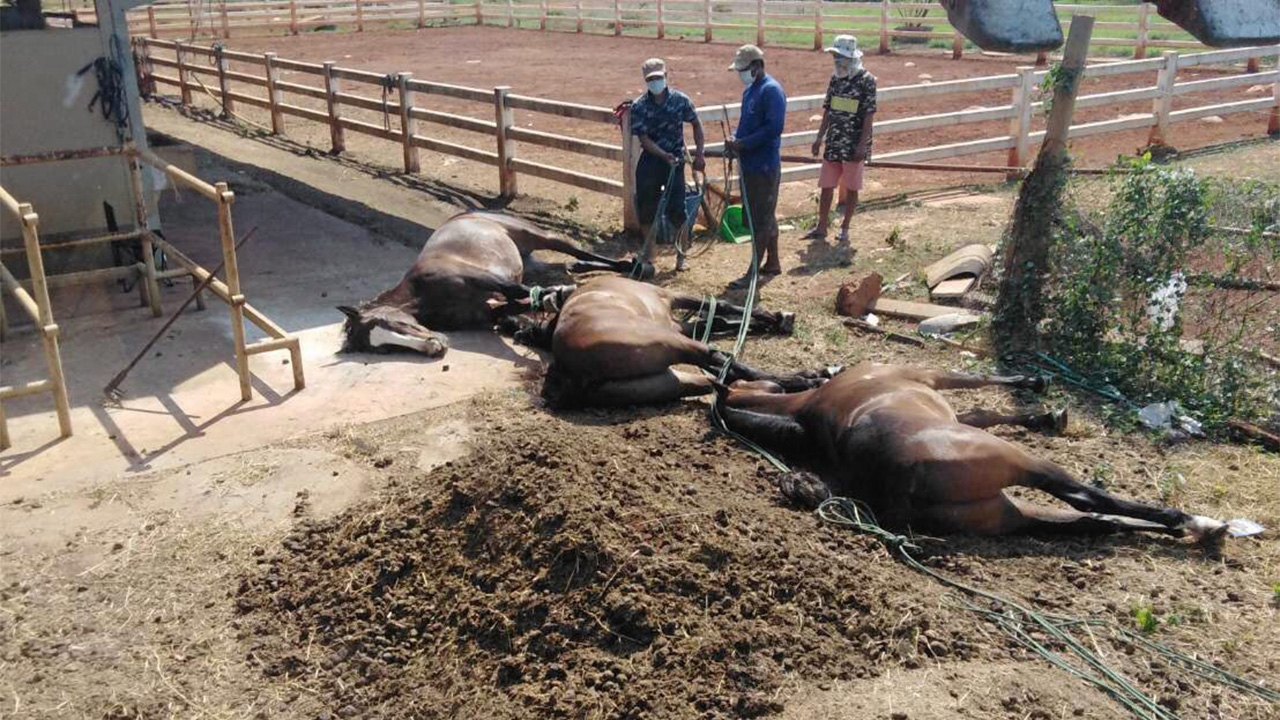 ผวา “กาฬโรคม้า” ระบาดหนักใน อ.ปากช่อง จ.นครราชสีมา ช่วงเดือนเดียวคร่าชีวิตม้าแข่งล้มตายเป็นใบไม้ร่วงถึง 42 ตัว จาก 11 ฟาร์ม อธิบดีกรมปศุสัตว์ส่งชุดปฏิบัติการลงพื้นที่ ชี้เป็นโรคที่เกิดขึ้นในไทยครั้งแรกยังไม่มีวัคซีนป้องกันรักษา มีแมลงเป็นพาหะนำเชื้อไวรัส ระบาดในสัตว์ไม่ติดสู่คน ยันไม่ใช่โรค “โควิด-19” สั่งตั้งด่านควบคุมโรคห้ามเคลื่อนย้ายม้าเข้าออกพื้นที่รัศมี 150 กม. วางมาตรการป้องกันโรค ติดตั้งมุ้งรอบคอกเลี้ยงม้าพร้อมทำความสะอาดฟาร์มทำลายเชื้อโรค คาดต้นตอของโรคเกิดจากพายุฤดูร้อนทำให้สัตว์ล้มตายจนมีเชื้อไวรัสระบาด