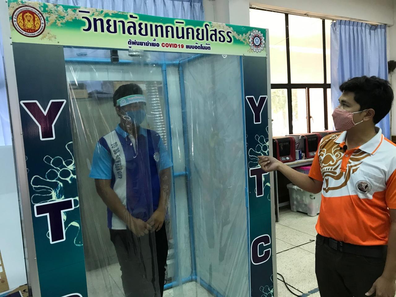 ทีมอาจารย์นักศึกษาเทคนิคยโสธร สร้างตู้พ่นยาฆ่าเชื้ออัตโนมัติ และเครื่องฆ่าเชื้อไวรัสโควิด-19 ด้วยรังสียูวี ป้องกันโควิด-19 เพื่อช่วยเหลือชาวยโสธรให้มากที่สุดในการผ่านวิกฤติโรคระบาดนี้