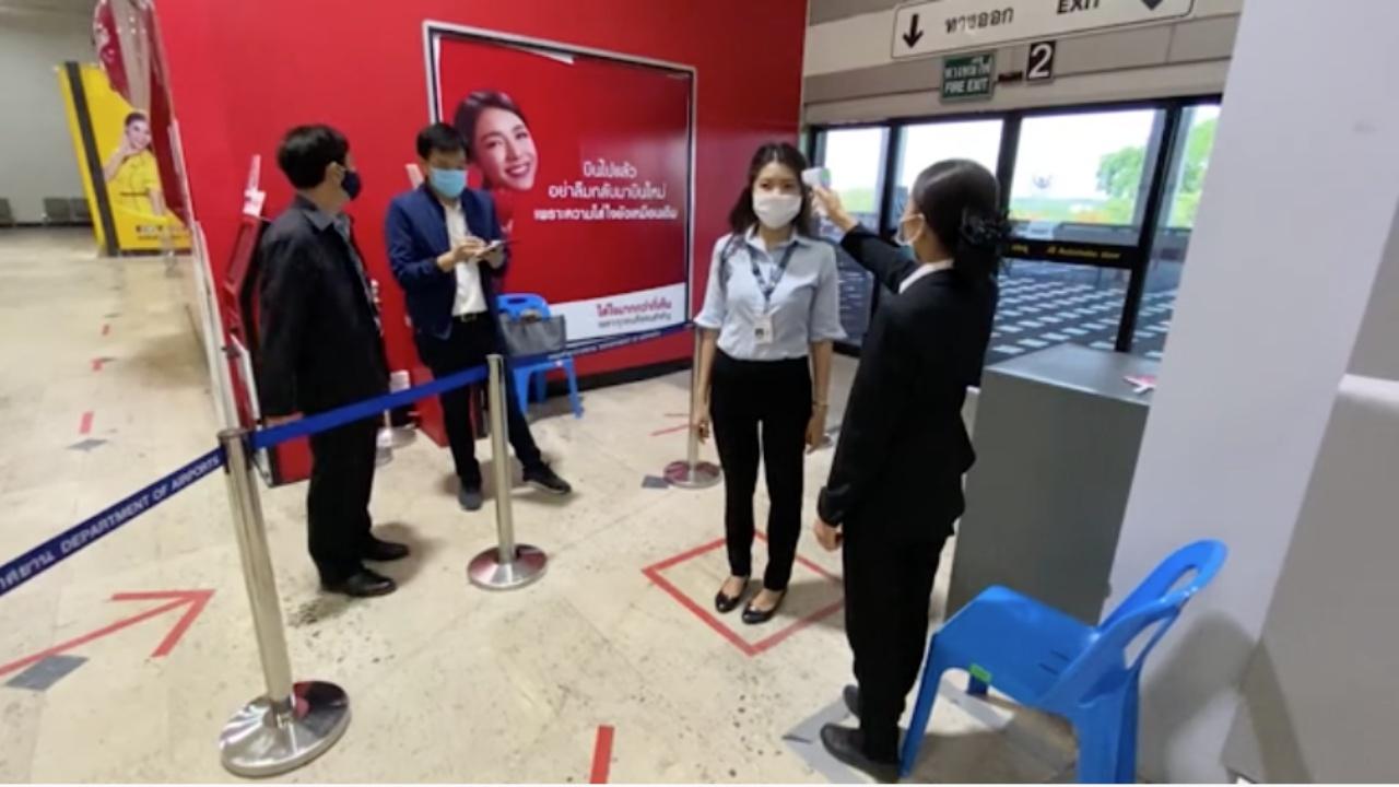 "เราได้มีการกำหนดประตูสำหรับการเข้าอาคาร คือที่ชั้น 2 ในส่วนของอาคารผู้โดยสารขาออก 1 ประตูและชั้น 1 อาคารผู้โดยสารขาเข้า 2 ประตู ซึ่งจัดเป็น 3 ประตูหลักที่ทุกคนจะใช้ในการเข้าและออกภายในตัวอาคารเท่านั้น ซึ่งทุกประตูจะมีการตรวจคัดกรองด้วยการวัดอุณหภูมิร่างกายหากมีอุณหภูมิเกิน 37.3 องศาเซลเซียสก็จะให้พักรอในจุดที่กำหนดไว้โดยมีเจ้าหน้าที่ซักประวัติทันที เมื่อตรวจการตรวจแล้วก็จะต้องล้างมือด้วยเจลแอลกอฮอล์ จากนั้นก็จะเข้าสู่ขั้นตอนของการบริการการโดยสารของสายการบิน ทางสนามบินได้ตีเส้นตามการเว้นระยะห่างทางสังคม ทั้งที่จุดจำหน่ายบัตรโดยสาร จุดตรวจสอบบัตรที่นั่งโดยสาร จุดพักรอ จุดตรวจสัมภาระและตรวจร่างกาย ที่ผู้โดยสารทุกคนจะต้องปฏิบัติตามกฎ ระเบียบ และเส้นที่เราได้กำหนดไว้อย่างเคร่งครัด" ผู้อำนวยการท่าอากาศยาน จ.ขอนแก่น กล่าว