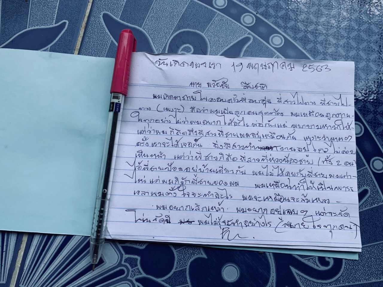 ส่วนที่บ้านเกิดเหตุ ผู้สื่อข่าวได้พบกับนางสาวสายฝน รุกขชาติ อายุ 35 ปี ลูกพี่ลูกน้องของผู้ตาย กำลังจัดของที่บ้านผู้ตาย พบจดหมายที่ผู้ตายเขียนลาตายวางอยู่บนหัวเตียง ข้อความทำนองว่าอยากเลิกเหล้า ไม่อยากเป็นภาระของพี่น้อง