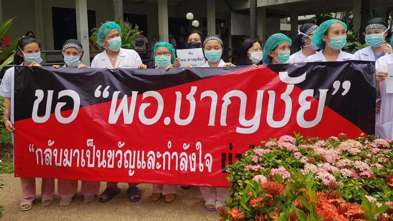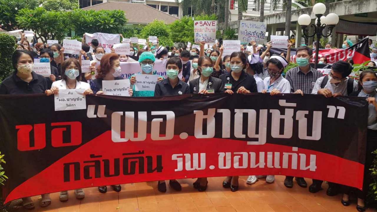 พญ.กนกวรรณ ศรีรักษา ประธานองค์กรแพทย์ โรงพยาบาลขอนแก่น กล่าวถึงการรวมตัวครั้งนี้ว่า ต้องการขอบคุณผู้ใหญ่ในกระทรวงสาธารณสุข ที่ช่วยเหลือปัดเป่าความทุกข์ของบุคลากรทางการแพทย์ รพ.ขอนแก่น ที่ผ่านมา เรามีการเรียกร้องให้การโยกย้าย นพ.ชาญชัย จันทร์วรชัยกุล อดีตผู้อำนวยการโรงพยาบาลศูนย์ขอนแก่นนั้น ให้เป็นไปตามหลักธรรมาภิบาล ไม่ใช่โยกย้ายอย่างไม่เป็นธรรมเช่นนี้ และเมื่อย้ายไปแล้วก็ให้บุคคลอื่นมารักษาการในตำแหน่งแทน ซึ่งตอนนี้คนที่รักษาการก็แสดงเจตนารมณ์ออกมาอย่างชัดเจนแล้วว่าขอถอนตัว