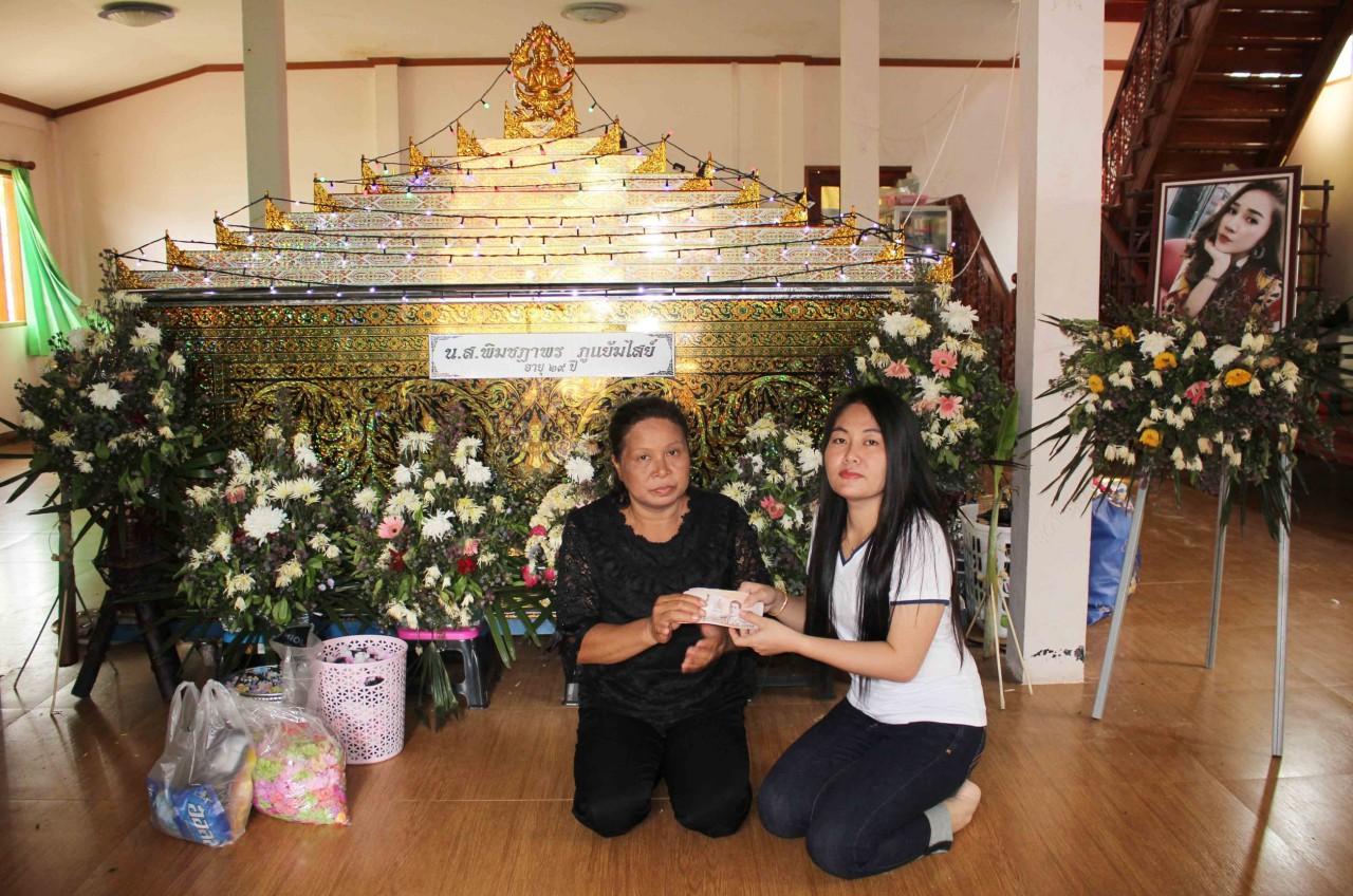 นางทองใส กล่าวอีกว่า ได้รับการประสานจากทางมารดาของผู้กองบอยว่า ในช่วงพิธีฌาปนกิจศพน้องนิ่ม คงจะไม่สามารถมาร่วมพิธีไว้อาลัยครั้งสุดท้ายด้วย เนื่องจากผู้กองบอยคงรับสภาพไม่ได้ ขณะนี้ ได้เดินทางเข้ากรุงเทพฯแล้วตั้งแต่เย็นวานนี้ อย่างไรก็ตาม ในช่วงการเตรียมงานฌาปนกิจ หรือ เผาศพน้องนิ่มนั้น ได้มีญาติและเพื่อน ทยอยเดินทางมาสมทบเพื่อร่วมพิธีตลอดวัน คาดว่าจะมีผู้มาร่วมพิธีไว้อาลัยจำนวนมาก ซึ่งได้ประสานไปยัง อสม. ผู้นำชุมชนในการเข้ามาช่วยเหลือด้านการคัดกรองผู้มาร่วมงาน ตามมาตรการการป้องกันไวรัสโควิด-19 ด้วย.
