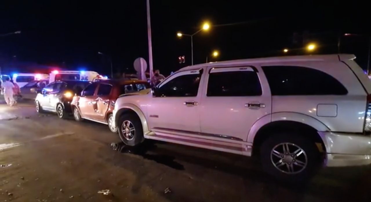 โชเฟอร์รถปูนอ้างเพิ่งซ่อมรถมาใหม่ ก่อนเบรกแตกพุ่งชนรถชาวบ้านติดไฟแดงบาดเจ็บ 5 ราย เสียหายรวม 7 คัน รถติดหนัก วัดแอลกอฮอล์พุ่ง 220 มิลลิกรัมเปอร์เซ็นต์