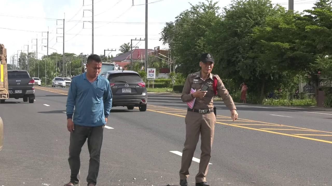 บิ๊กไบค์หนุ่มเบลเยียมชนกับรถดัมพ์รอเลี้ยวเข้าปั๊ม ก่อนไถลไปกว่า 50 เมตร จนขาซ้ายแหลกเป็นแผลรุ่งริ่ง อาการสาหัสที่บุรีรัมย์ คนขับรถบรรทุกคู่กรณีเผยข้ามถนนมาแล้วจะเข้าปั๊มน้ำมัน จู่ๆ ก็ถูกชน