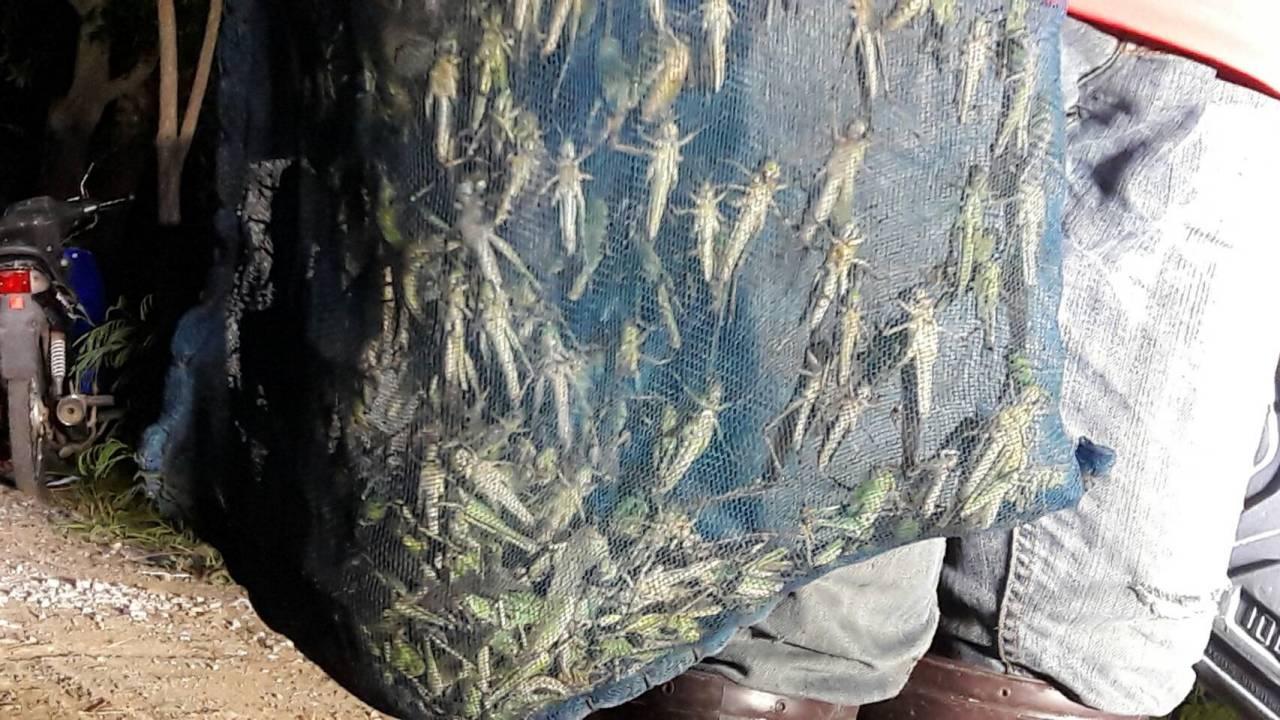 เมื่อเวลา 20.00 น.วันที่ 24 ส.ค. 63 ผู้สื่อข่าวลงพื้นที่บ้านดงใหญ่ ต.ดงใหญ่ อ.พิมาย จ.นครราชสีมา หลังพบว่ามีฝูงตั๊กแตนเขียวลงเกาะต้นข้าวของชาวนาในเขตพื้นที่ 4 ตำบลของ อ.พิมาย คือ ต.ดงใหญ่ ต.ชีวาน ต.กระชอน และต.ท่าหลวง เป็นจำนวนมากในรอบ 20 ปี ซึ่งในวิกฤตินี้ก็เป็นโอกาสให้กับชาวนาและชาวบ้านได้จับตั๊กแตนขายเพื่อเป็นรายได้เสริมให้กับครอบครัวได้วันละ 300-1,000 บาท