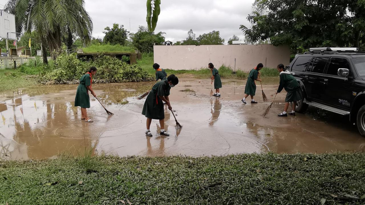 เมื่อเวลา 09.30 น. วันที่ 23 ก.ย.63 นายคมป์ สังข์วงษ์ นายอำเภอขุนหาญ จ.ศรีสะเกษ เดินทางไปที่โรงเรียนบ้านสำโรงเกียรติ ต.บักดอง อ.ขุนหาญ เพื่อสำรวจความเสียหาย หลังจากที่มีฝนตกหนักต่อเนื่องเป็นเวลานานที่บริเวณเทือกเขาพนมดงรัก ทำให้เกิดน้ำป่าไหลหลากเข้าท่วมพื้นที่บ้านสำโรงเกียรติ เมื่อช่วงเย็นของวันที่ 22 ก.ย. โดยภายในโรงเรียนบ้านสำโรงเกียรติและถนนหน้าโรงเรียน มีน้ำท่วมสูง แต่เนื่องจากบ้านสำโรงเกียรติเป็นพื้นที่สูง น้ำจึงไหลหลากลงสู่ที่ต่ำอย่างรวดเร็ว ไม่นานน้ำก็ลดลงและแห้งในเวลาไม่นาน จนกระทั่งเวลาเที่ยงคืนน้ำจึงไหลลงไปสู่ที่ต่ำ โดยที่บ้านม่วงแยก ตำบลพราน น้ำไหลท่วมนาข้าวจมน้ำหลายร้อยไร่ ท่วมถนนก่อนเข้าหมู่บ้านจนรถผ่านไม่ได้ แต่พอเช้ามาน้ำก็ลดลงไหลลงสู่ที่ต่ำอย่างรวดเร็วเช่นกัน แต่ในนาข้าวน้ำยังท่วมจนมิดยอดข้าวอยู่