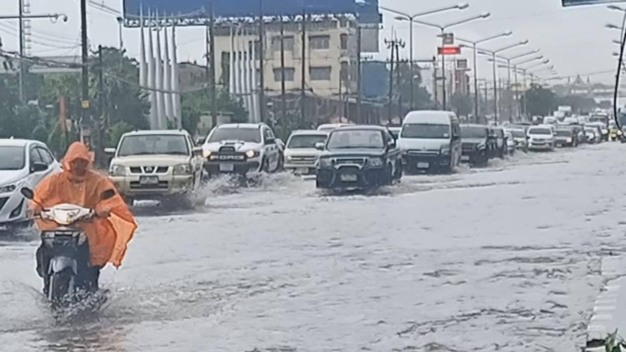 ร่องมรสุมพาดผ่านอีสาน ทำให้พื้นที่ อ.เมือง จ.อุดรธานี เจอฝนถล่มนาน 1 ชม. ส่งผลให้น้ำรอระบายเอ่อท่วมถนนนิตโย ถนนศรีสุข และพื้นที่ชุมชนโดยรอบ ด้านเทศบาลฯ เร่งสูบน้ำระบายออกตัวเมืองจนแห้งแล้ว