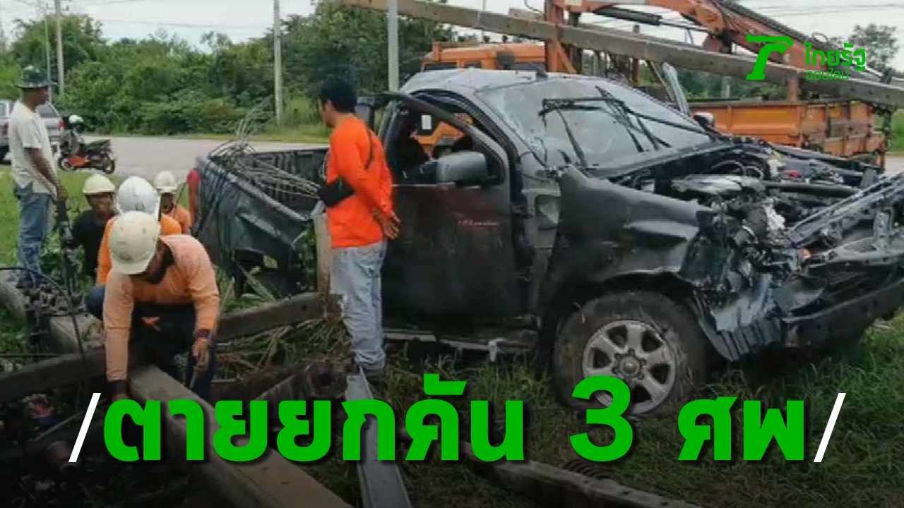 อุบัติเหตุที่สกลนคร คร่าชีวิตหนุ่มสาว กลับจากบ้านเพื่อนกลางดึก ควบกระบะฝ่าสายฝน เกิดเสียหลักแฉลบลงข้างทาง พุ่งชนเสาไฟฟ้าหัก ร่างกระเด็น ถูกรถทับเสียชีวิตหมดคัน 3 ศพ พบทั้งสามคนเป็นเพื่อน และอายุ 33 ปีเท่ากัน