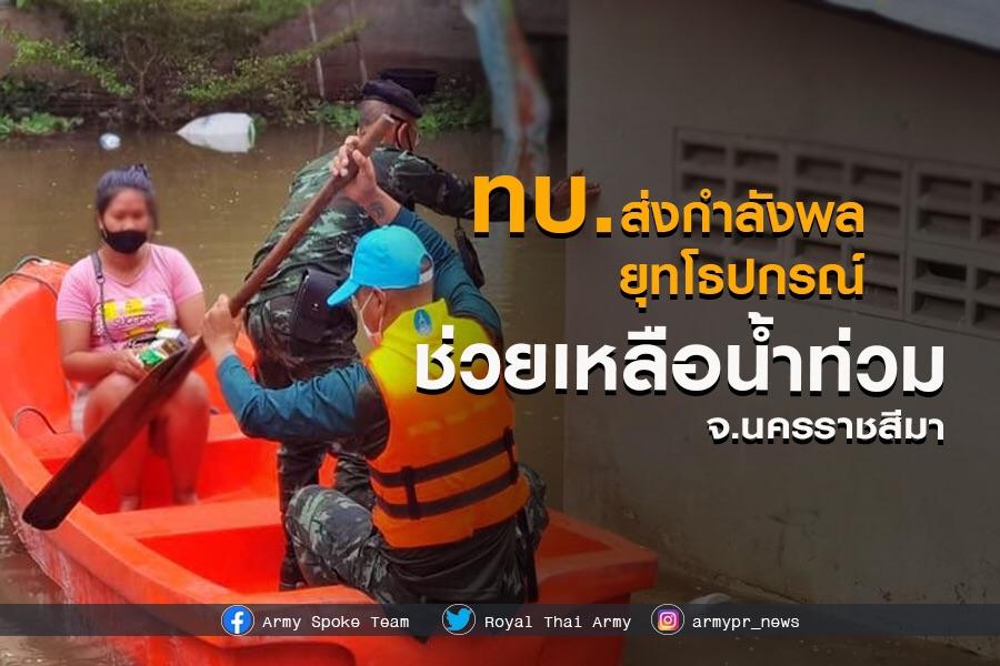 "ผบ.ทบ." สั่ง ศบภ.มทบ.21 หน่วยขึ้นตรง จัดกำลังพลทหาร และยุทโธปกรณ์ ลงพื้นที่ช่วยเหลือประชาชนประสบอุทกภัยน้ำท่วมเป็นการด่วนที่ จ.นครราชสีมา พร้อมเร่งบรรเทาความเดือดร้อน อำนวยความสะดวก นำเรือท้องแบนเข้าช่วยอพยพผู้ป่วยติดเตียง ผู้สูงอายุเข้าสู่พื้นที่ปลอดภัย ตลอด 24 ชม.
