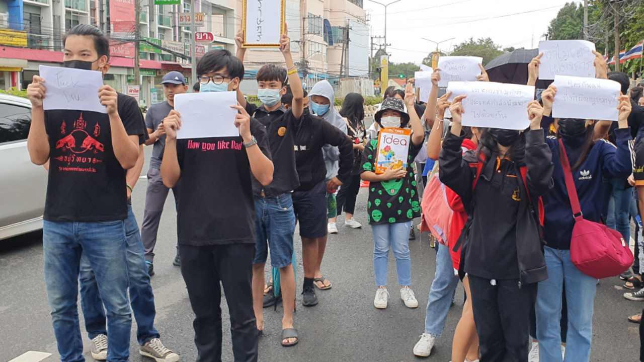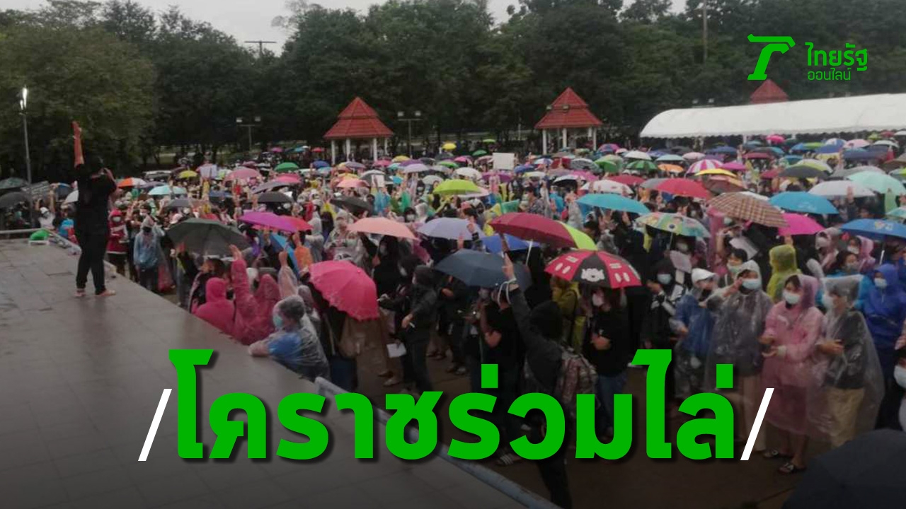 วันที่ 17 ต.ค. ที่บริเวณลานหมอลำ ภายในมหาวิทยาลัยเทคโนโลยีสุรนารี ต.สุรนารี อ.เมือง จ.นครราชสีมา กลุ่มเยาวชน นิสิต นักศึกษา รวมตัวชุมนุมแสดงพลังกว่า 1,000 คน ท่ามกลางสายฝนโปรยปราย แต่ทุกคนไม่ยอมถอย โดยมีคนเสื้อแดงร่วมเคลื่อนไหวทำกิจกรรม ฉันจิบ่ทน เผด็จการจงพินาศ ประชาราษฎร์จงเจริญ ประณามรัฐบาลที่ใช้ความรุนแรงในการยุติการชุมนุม พร้อมเรียกร้องให้รัฐบาลหยุดคุกคามประชาชน กล่าวโจมตีพล.อ.ประยุทธ์ จันทร์โอชา นายกรัฐมนตรีให้ลาออกไป มีการชู 3 นิ้ว