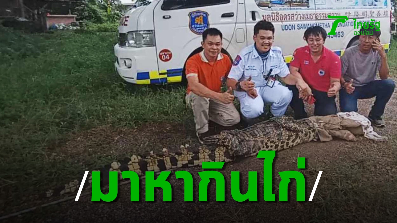 ชาวบ้านในเขตเทศบาลนครอุดรธานี ไม่อยากจะเชื่อสายตาตัวเอง สัตว์เลื้อยคลานตัวใหญ่ ซึ่งคือจระเข้ ตัวยาวกว่า 3 เมตรกำลังงุดๆ มุดรั้วบ้าน คาดจะเข้าไปขโมยกินไก่เล้า วิ่งไปบอกเจ้าของบ้านยังคิดว่าเป็นตัวเงินตัวทองหรือเปล่า คาดหลุดจากบ่อเลี้ยง แต่คงไม่มีใครรับเป็นเจ้าของ