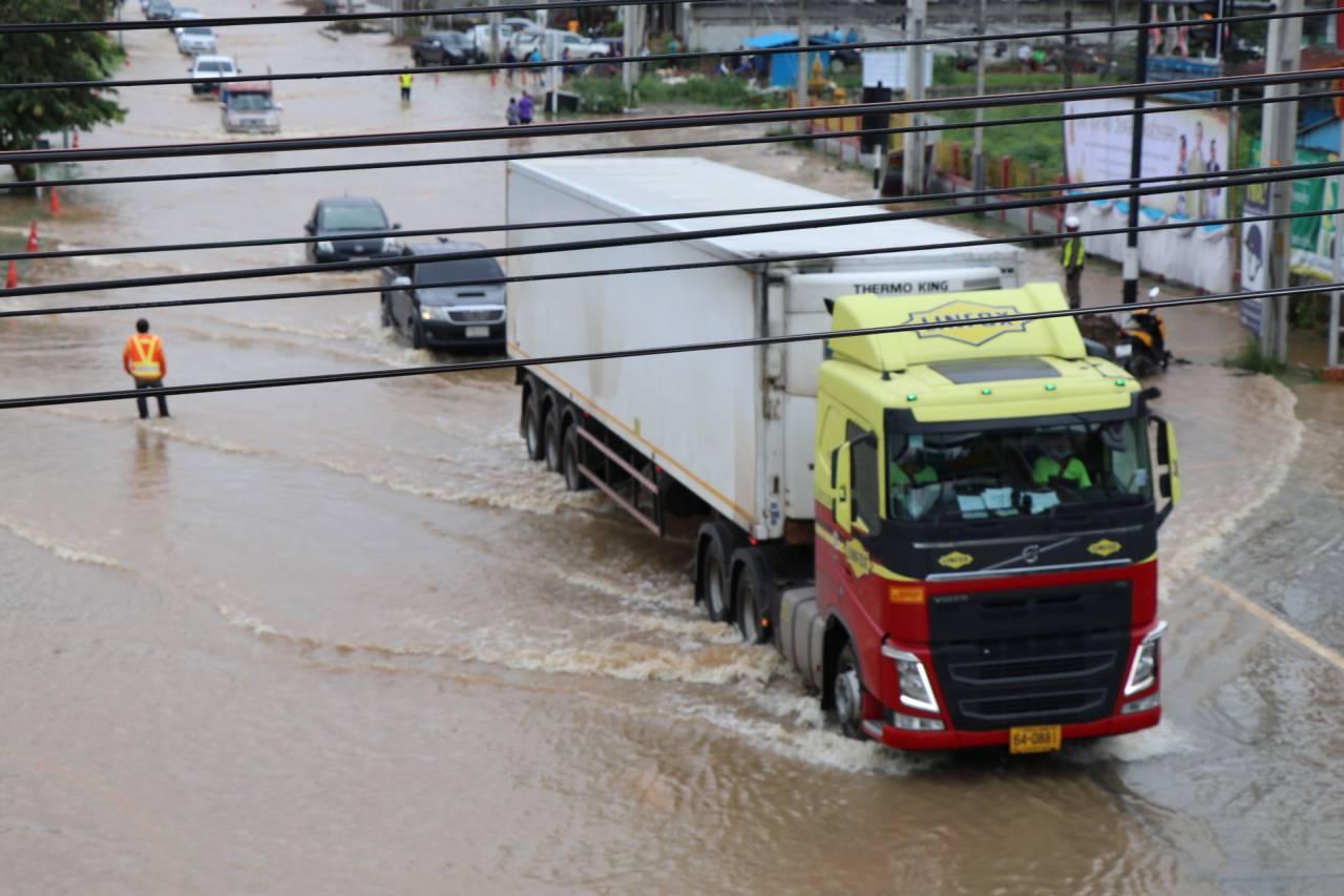 ผู้สื่อข่าวรายงานสถานการณ์น้ำท่วมในพื้นที่ จังหวัดนครราชสีมา โดยเฉพาะในพื้นที่อำเภอปักธงชัย น้ำจากลำพระเพลิงได้ไหลเอ่อท่วมตลาด และชุมชนต่างๆ ในเขตเทศบาลเมืองปักธงชัย ซึ่งเป็นเขตเศรษฐกิจตั้งแต่ช่วงกลางดึกที่ผ่านมา หน่วยงานที่เกี่ยวข้องได้เข้าให้การช่วยเหลือประชาชนทั้งการขนของและอพยพไปอยู่ในที่ปลอดภัย โดยระดับน้ำสูงประมาณ 30-50 ซม. และเพิ่มขึ้นอย่างต่อเนื่อง โดยเฉพาะมวลน้ำยังไหลเข้าท่วมทางหลวงหมายเลข 304 ปักธงชัย-กบินทร์บุรี เมื่อเวลา 08.00 น. พ.ต.อ.ชนัตถ์ กวีขาวฉลาด ผกก.สภ.ปักธงชัย จ.นครราชสีมา พร้อมชุด จราจร สภ.ปักธงชัย ออกตรวจสอบสภาพน้ำท่วมในพื้นที่ พบว่าบริเวณ ถนน 304 หน้าโลตัส-แยกหน้าโรงเรียนเมืองปัก ขามาจากวังน้ำเขียวเข้านครราชสีมา ระยะทางยาว 1 กิโลเมตร ท่วมสูง 10-20 เซนติเมตร การจราจรติดขัด แจ้งประชาชนใช้ความระมัดระวังในการขับขี่รถเส้นทางดังกล่าว หรือหลีกเลี่ยงการใช้เส้นทางจุดนี้