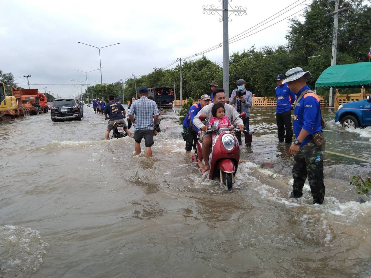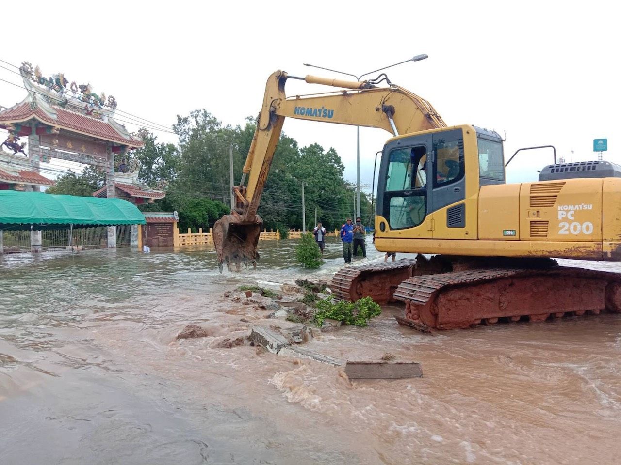 เมื่อวันที่ 20 ตุลาคม 2563 ที่จ.นครราชสีมา จากกรณีเหตุจากอุทกภัย พล.อ.เฉลิมพล ศรีสวัสดิ์ ผู้บัญชาการทหารสูงสุด (ผบ.ทสส.) มีความห่วงใยประชาชนที่ได้รับความเดือดร้อน จึงให้กองบัญชาการกองทัพไทย (บก.ทท.) โดยหน่วยบัญชาการทหารพัฒนา (ผบ.นทพ.) เข้าช่วยเหลือประชาชนที่ประสบเหตุจากอุทกภัยอย่างเร่งด่วน โดยพล.ต.นำพล คงพันธ์ ผู้อำนวยการศูนย์บรรเทาสาธารณภัยสำนักพัฒนาภาค 5 (ผอ.ศบภ.สนภ.5) ได้จัดกำลังพล 6 นาย รถแม็คโคร จำนวน 1 คัน เข้าดำเนินการขุดเพื่อเปิดเกาะกลางถนน ด้านหน้าที่ทำการเทศบาลเมืองปัก ต.เมืองปัก อ.ปักธงชัย เพื่อขยายช่องทางระบายน้ำให้กว้างขึ้นสามารถระบายน้ำลงคลองได้เร็วและสะดวกยิ่งขึ้นพร้อมได้ช่วยเหลือประชาชนผู้สัญจร เนื่องจากบริเวณนี้มีกระแสน้ำไหลแรง
