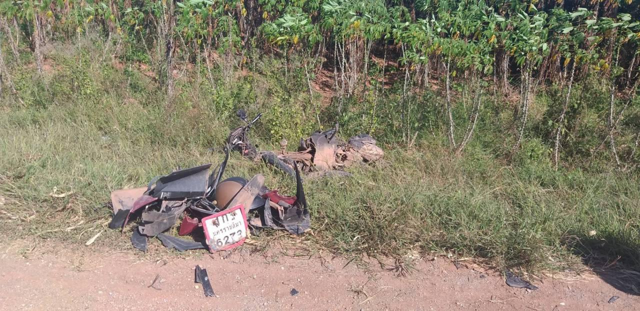 สาวด่านขุนทดขับกระบะมาเร็วเจอ จยย.ลุงวัย 63 หักเลี้ยวตัดหน้าจะเข้าลานมัน เบรกไม่ทันชนกระเด็นลากไถลไป 60 ม. ปะทะเสาไฟหักรถพลิกตะแคงเข้าไร่มันพังยับอาการสาหัส ส่วนลุงคู่กรณีตายคาที่