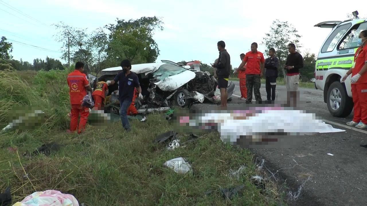 กระบะหลับในพุ่งข้ามเลนชนประสานงานเก๋งบนถนนมิตรภาพขาออก พื้นที่ อ.โนนแดง จ.นครราชสีมา โดยคนบนรถเก๋งเสียชีวิต 5 ศพ ทั้งหมดเป็นครอบครัวเดียวกัน และบาดเจ็บสาหัส 4 ราย