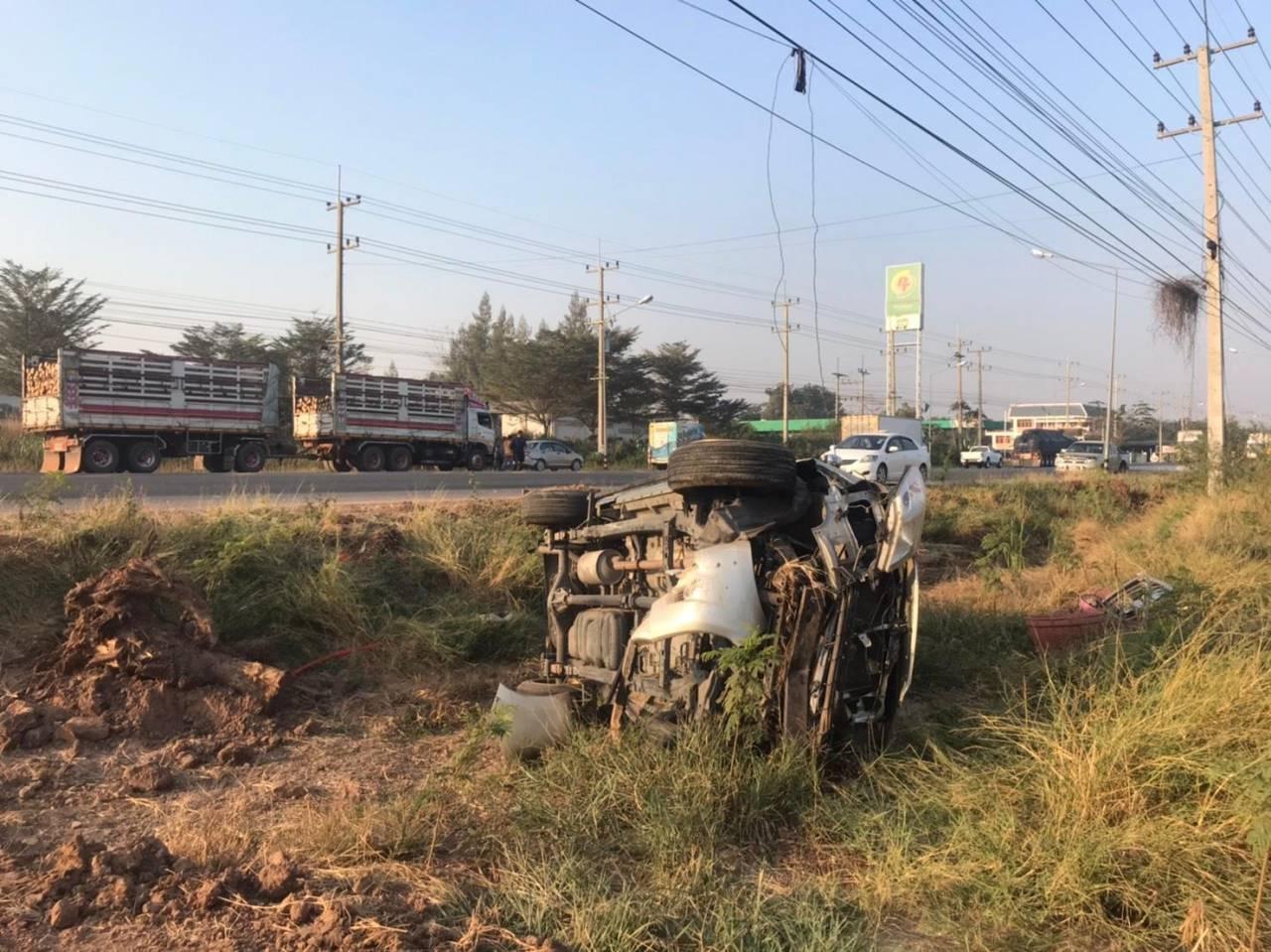 ที่เกิดเหตุพบรถกระบะพลิกคว่ำก่อนคันแรกเป็นรถกระบะวีโก้ สีบรอนซ์ทอง ป้ายทะเบียน บพ 4394 หมวดจังหวัดชัยภูมิ ซึ่งมีนายสุชาติ พานนท์ อายุ 57 ปี ชาวบ้าน ตำบลหนองบัวแดง อำเภอหนองบัวแดง จังหวัดชัยภูมิ ออกจากตัวรถมายืนรอให้ความช่วยเหลืออยู่บริเวณบนถนน