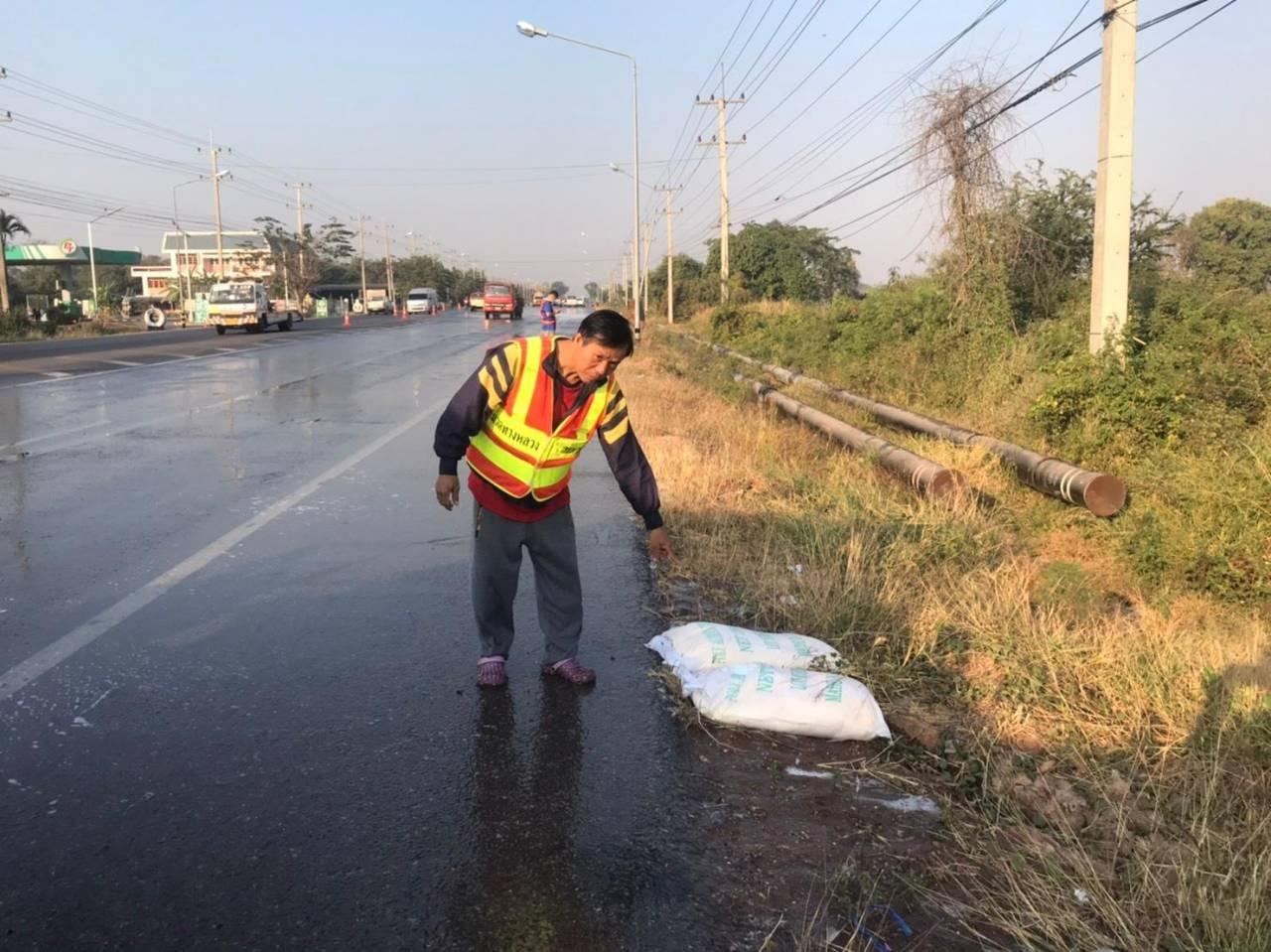 ในส่วนรถบรรทุกที่ทำกระสอบบรรจุสารเคมีหล่นลงถนนจำนวน 5 กระสอบ และแตก 1 กระสอบกระจายเต็มพื้น จนเป็นต้นเหตุของการเกิดอุบัติเหตุในครั้งนี้ จนทำให้เกิดอุบัติเหตุจำนวนนับสิบคันจนเป็นเหตุให้มีผู้ได้รับบาดเจ็บหลายราย และเสียชีวิต 1 ราย เจ้าหน้าที่จะได้เร่งตรวจสอบกล้องวงจรปิดบริเวณใกล้เคียง เพื่อหารถบรรทุกคันดังกล่าว เพื่อเชิญตัวคนขับและเจ้าของรถมาสอบสวนเพื่อดำเนินคดีตามกฎหมายต่อไป