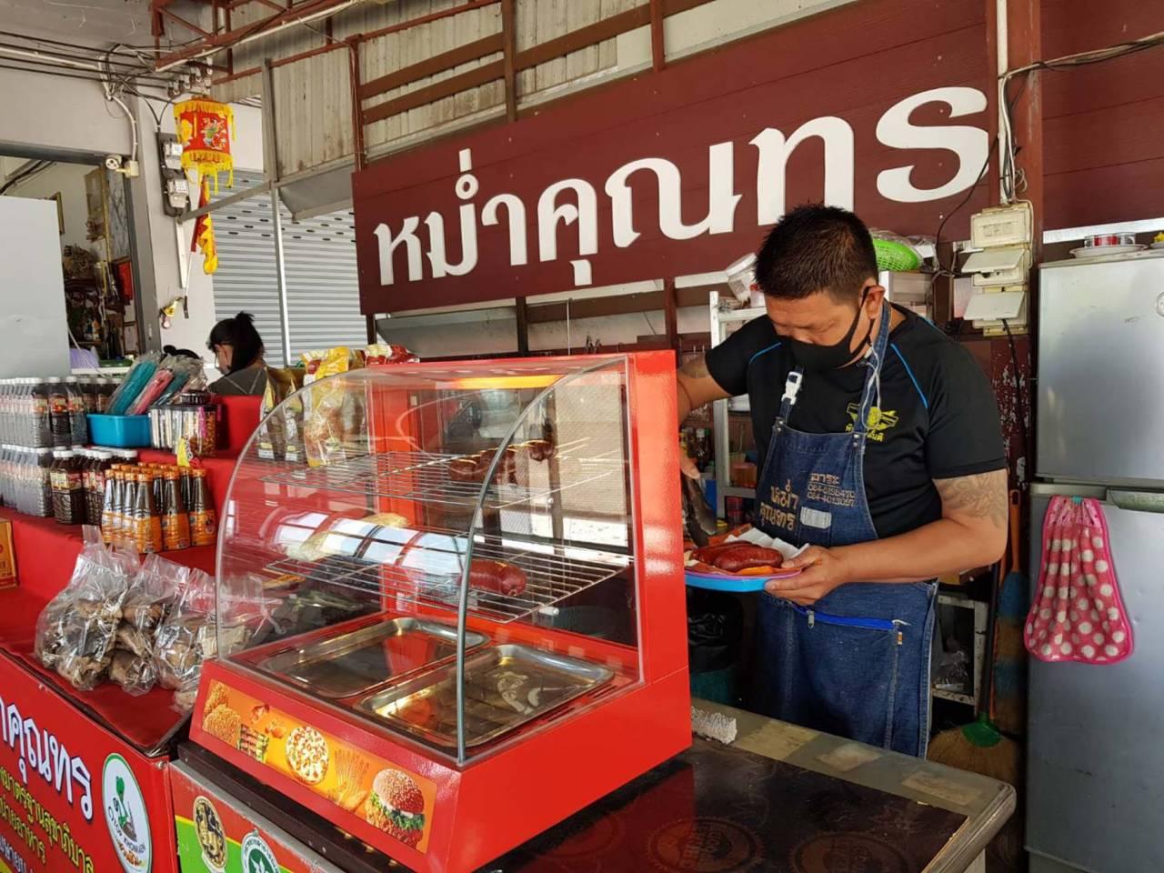 เมื่อเวลา 10.00 น. วันที่ 19 ม.ค.2564 ที่ร้านหม่ำคุณทร ของดีเมืองพล ตั้งอยู่ริมถนนมิตรภาพ สายขอนแก่น-นครราชสีมา ต.โจดหนองแก อ.พล จ.ขอนแก่น ซึ่งเปิดเป็นร้านขายหม่ำหมู หม่ำเนื้อ ไส้กรอกหมู ไส้กรอกเนื้อ ลูกครก หนังวัว ล้วนเป็นของดีขึ้นชื่อประจำอำเภอพล ที่หลายคนรู้จักว่าอยากกินหม่ำต้องหม่ำเมืองพล แต่หลังจากเกิดการแพร่ระบาดของเชื้อไวรัสโควิด-19 ระลอกใหม่ ทางร้านได้งดจำหน่ายแบบนั่งทานที่ร้าน แต่จะเปิดให้ลูกค้าเดินทางมาซื้อที่หน้าร้านแล้วกลับไป โดยนำมาตรการป้องกันการแพร่ระบาดของเชื้อไวรัสโควิด-19 ของสาธารณสุขมาใช้ ทั้งการตรวจวัดอุณหภูมิลูกค้าที่มาที่ร้าน ลูกค้าจะต้องสวมใส่หน้ากากอนามัย ล้างมือด้วยเจลแอลกอฮอล์ และเว้นระยะห่างทางสังคม