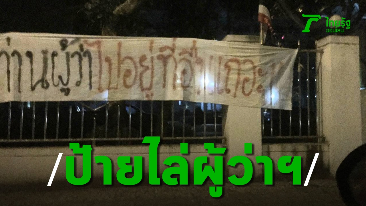ป้ายโผล่ รอบศาลากลางจังหวัดร้อยเอ็ด ขับไล่ผู้ว่าฯ ย้ายไปอยู่ที่อื่นเถอะ พร้อมตั้งคำถาม งานกาชาดจัดได้ ถนนคนเดินห้ามจัด ชาวเน็ตจวกยับ
