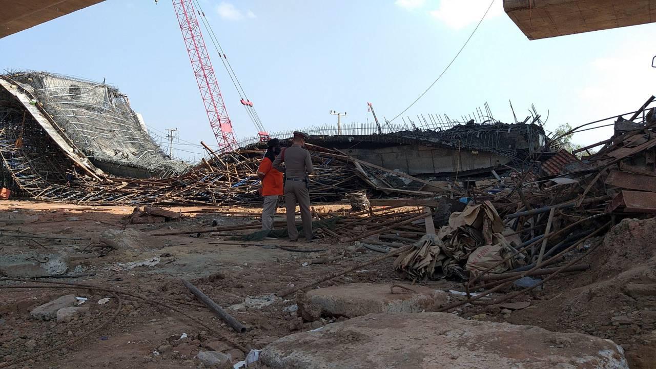 ถนนวงแหวนรอบนอกโคราช ช่วงทางข้ามถนนสุรนารายณ์ นครราชสีมา-โนนไทย ไปชัยภูมิ พื้นที่บ้านโคกสูง เกิดถล่มขณะก่อสร้าง คาดนั่งร้านรับน้ำหนักคอนกรีตไม่ไหว คนงานเจ็บ 9 ราย ไม่มีเสียชีวิตนำส่ง รพ.แล้ว