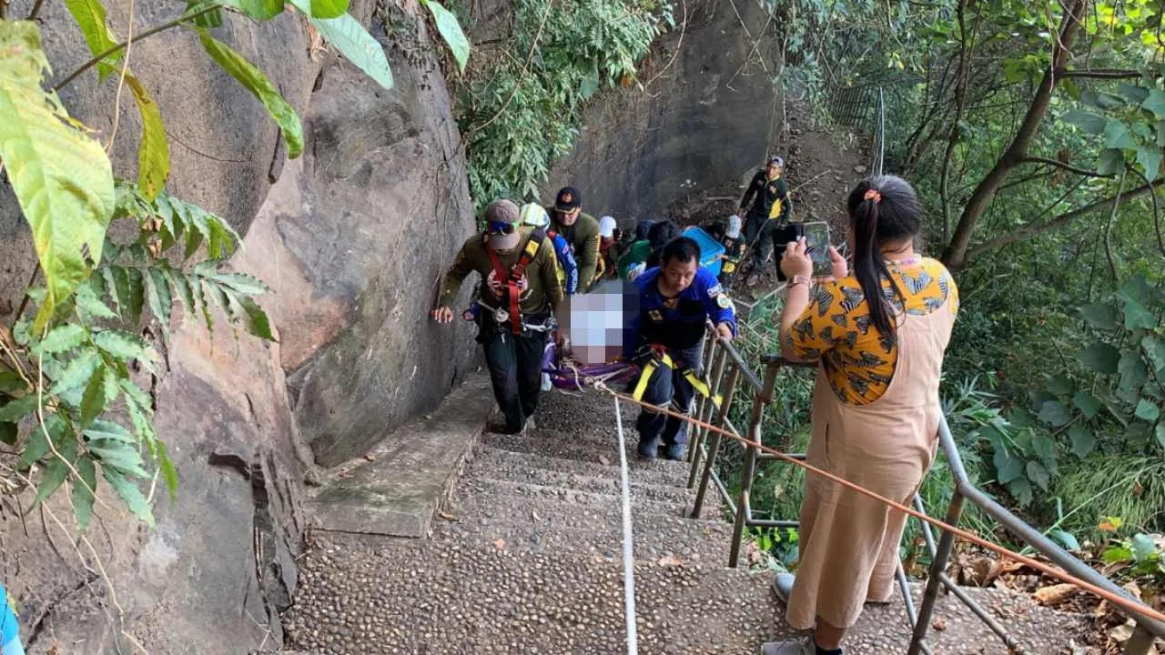 ชายวัย 52 ปี ชาวสระบุรี มาเที่ยววัดผาตากเสื้อ หนองคาย ยืนถ่ายภาพบนโขดหินข้างสกายวอล์กกระจก เท้าเข้าไปขัดร่องหินแล้วลื่นพลัดตกเหวลึก 30 เมตร ร่างตกกระแทกก้อนหิน เสียชีวิต