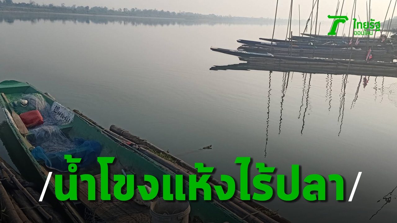 แม่น้ำโขงที่บึงกาฬ เหลือแค่ 2 เมตร ทำให้กระแสน้ำไม่ไหลนิ่งเปลี่ยนจากสีแดงขุ่นเป็นสีฟ้าครามน้ำใส กลายเป็นวิกฤติชาวประมงพื้นบ้าน ไม่มีปลาให้จับ หอยก็ไม่มีให้งม ขาดรายได้ปรับตัวไปทำอาชีพอื่น