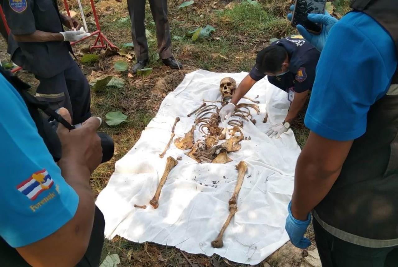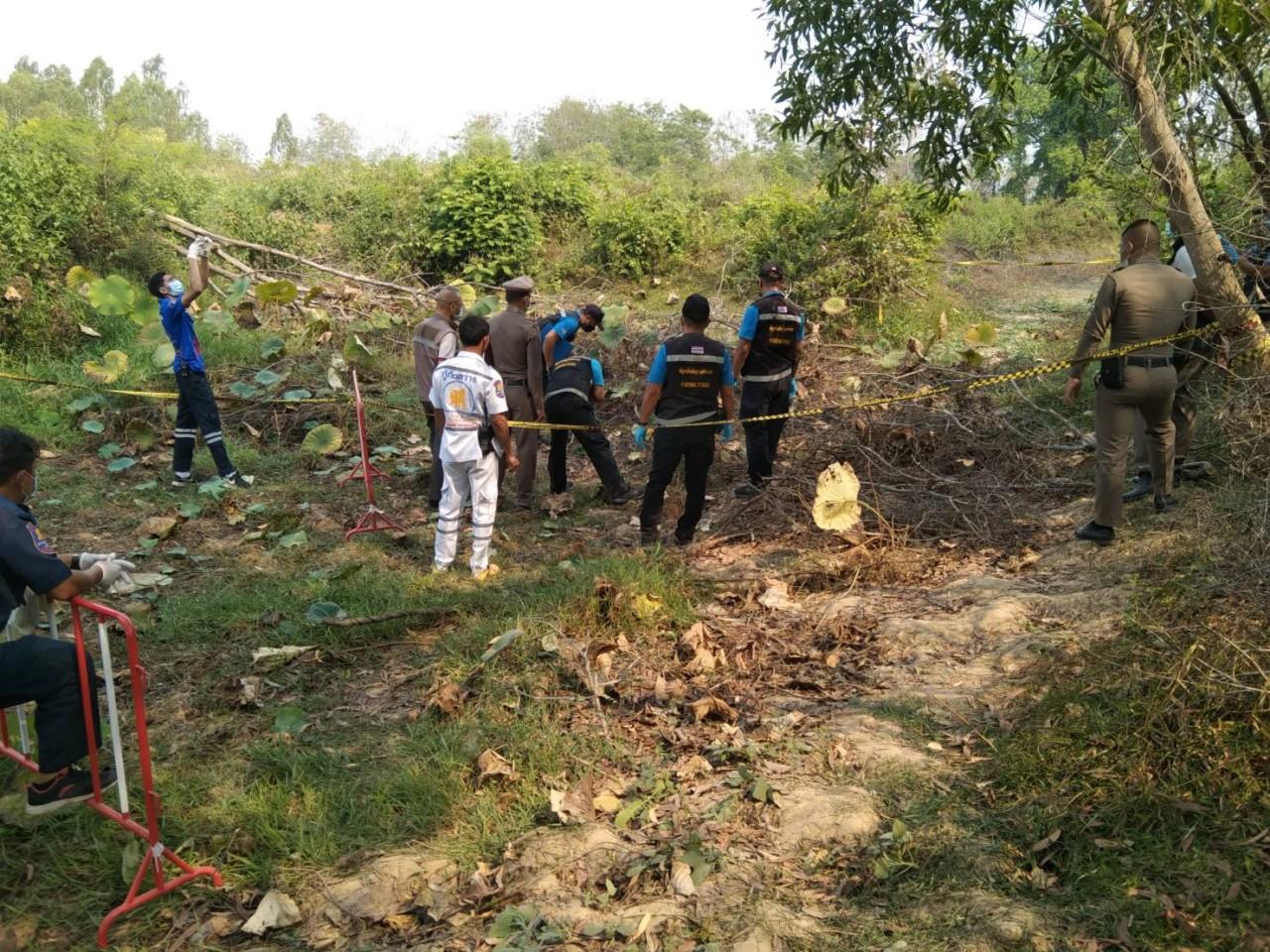 ที่เกิดเหตุเป็นสระน้ำขนาดความกว้างประมาณ 7 เมตร ยาวประมาณ 100 เมตร และลึกประมาณ 70 เมตร ซึ่งเป็นสระน้ำในที่ดินสาธารณะท้ายหมู่บ้าน อยู่ในสภาพแห้งขอด มีเศษกิ่งไม้และต้นบัวขึ้นอยู่ พบกะโหลกศีรษะ และชิ้นส่วนกระดูกลักษณะคล้ายกับโครงกระดูกมนุษย์ กระจายอยู่ทั่วบริเวณสระน้ำที่แห้งขอดดังกล่าว เจ้าหน้าที่จึงทำการตรวจที่เกิดเหตุ พร้อมทั้งเก็บโครงกระดูกดังกล่าวนำส่งให้สถาบันนิติเวชเพื่อตรวจพิสูจน์อัตลักษณ์บุคคล เพื่อยืนยันตัวตนต่อไป