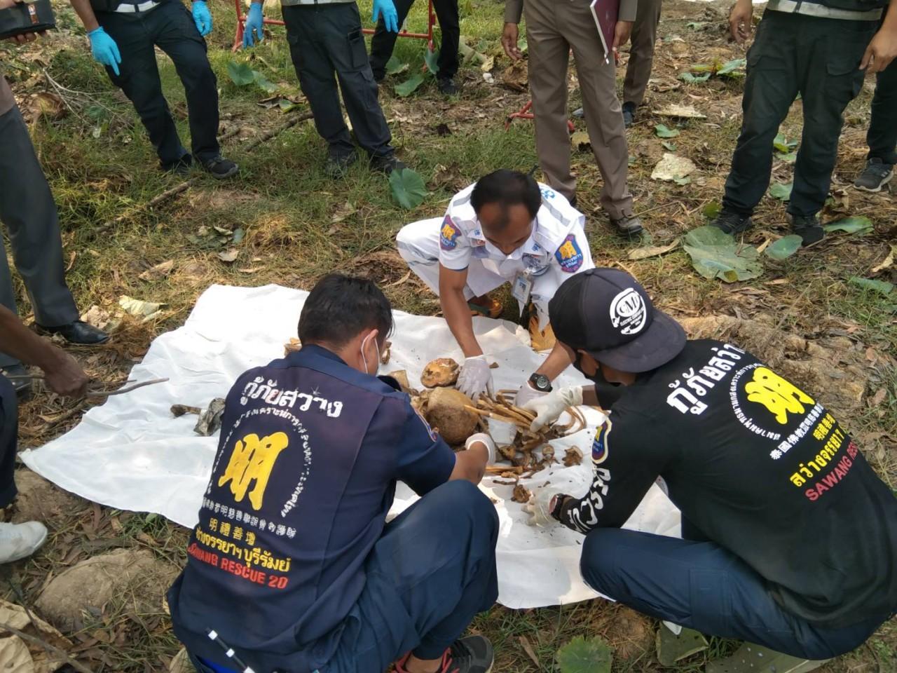 หนุ่มบุรีรัมย์ ออกหาหนูนา-แทงปลาไหล ในสระน้ำที่แห้งขอดที่บ้านโคกกระเบา ผงะเจอกะโหลกคนและโครงกระดูก โร่แจ้ง จนท.มาตรวจ คาดเป็นกระดูกของเพื่อนบ้านที่หายไร้วี่แววมานาน 5-6 เดือน