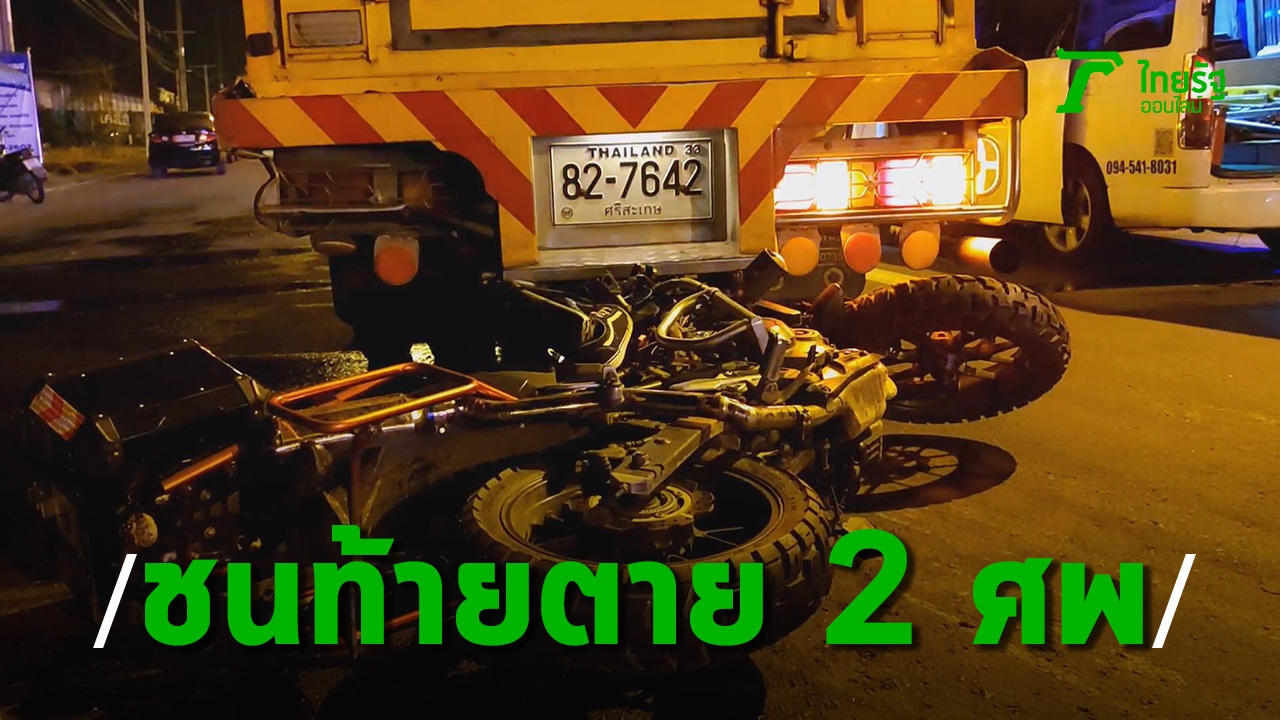 2 หนุ่มศรีสะเกษขี่บิ๊กไบค์ชนท้ายรถบรรทุกส่งน้ำแข็งที่กลับรถตัดหน้าบนถนนศรีสะเกษ-อุทุมพรพิสัย ช่วงก่อนถึงแยกบ้านหนองยาง อ.อุทุมพรพิสัย เสียชีวิตคาที่ 2 ศพ ในวันสงกรานต์
