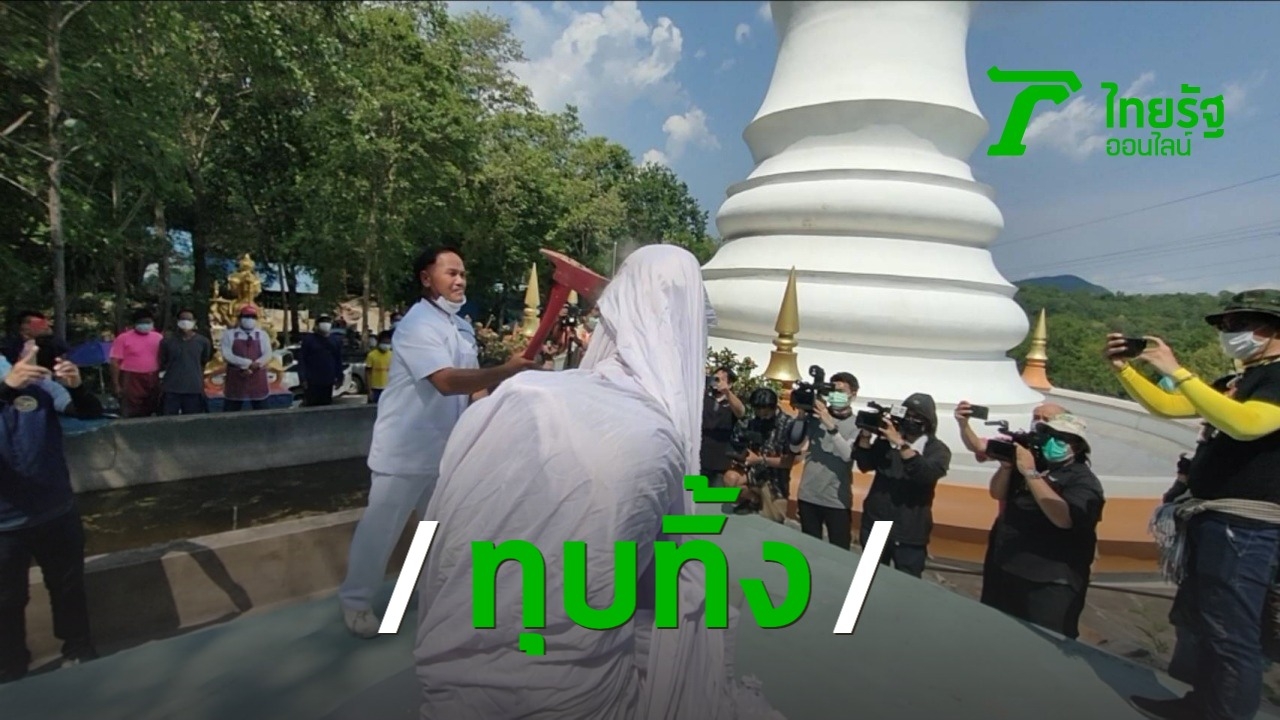 ผู้ว่าฯหนองบัวลำภู ร่วมพิธีเสี่ยงทาย พราหมณ์ขออนุญาตเทวดาฟ้าดิน ก่อนลงค้อนทุบทิ้ง รูปปั้นถวายหัว ในที่พักสงฆ์ภูหินกอง นำเศษอิฐเศษปูนไปทิ้ง โดยมีลูกศิษย์ยืนดูแต่ไม่มีใครคัดค้าน ทหารเตรียมพัฒนาพื้นที่ เป็นที่ท่องเที่ยวของจังหวัด