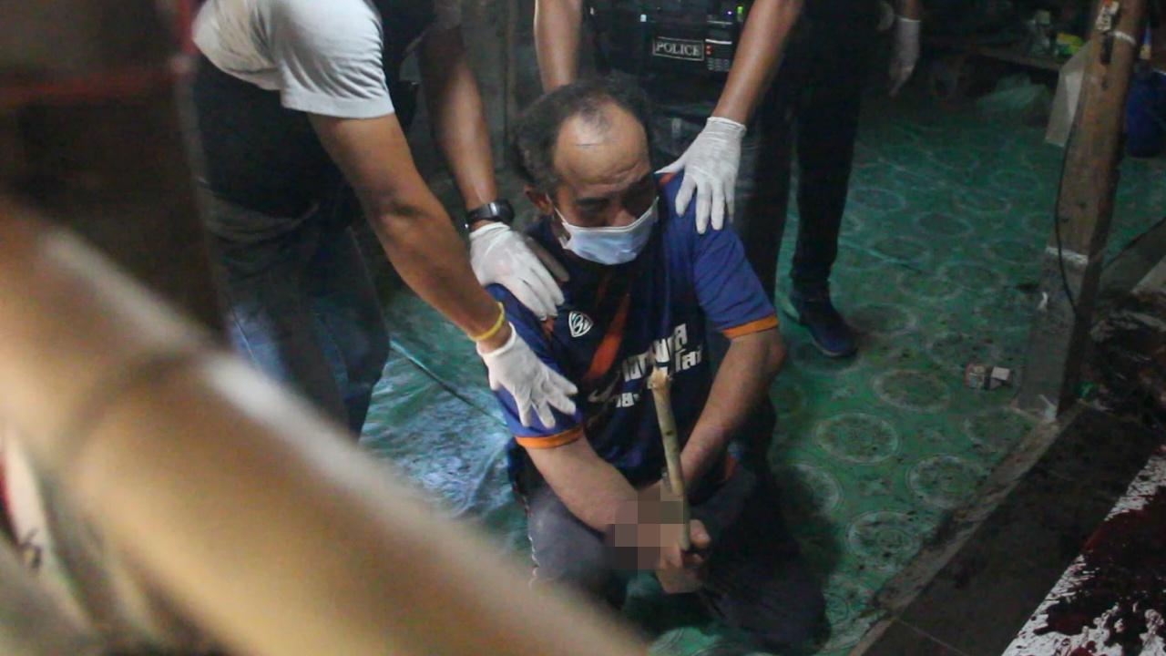 กระทั่งมาช่วงเช้าวันนี้ไม่เห็นพ่อและแม่ออกมาจากบ้าน โทรหาก็ไม่รับสาย จึงใช้หลานชายมาดู พบว่าน้องชายฆ่าพ่อแม่เสียชีวิตจมกองเลือดอยู่ในบ้านแล้ว ซึ่งขณะนั้นน้องชายยังอยู่ในอาการคล้ายคนเมายาขาดสติ หลังจากฆ่าพ่อและแม่แล้วยังมานั่งหัวเราะถือมีดพร้าอยู่หน้าบ้าน ไม่มีใครกล้าเข้าใกล้ จึงโทรศัพท์แจ้งตำรวจ