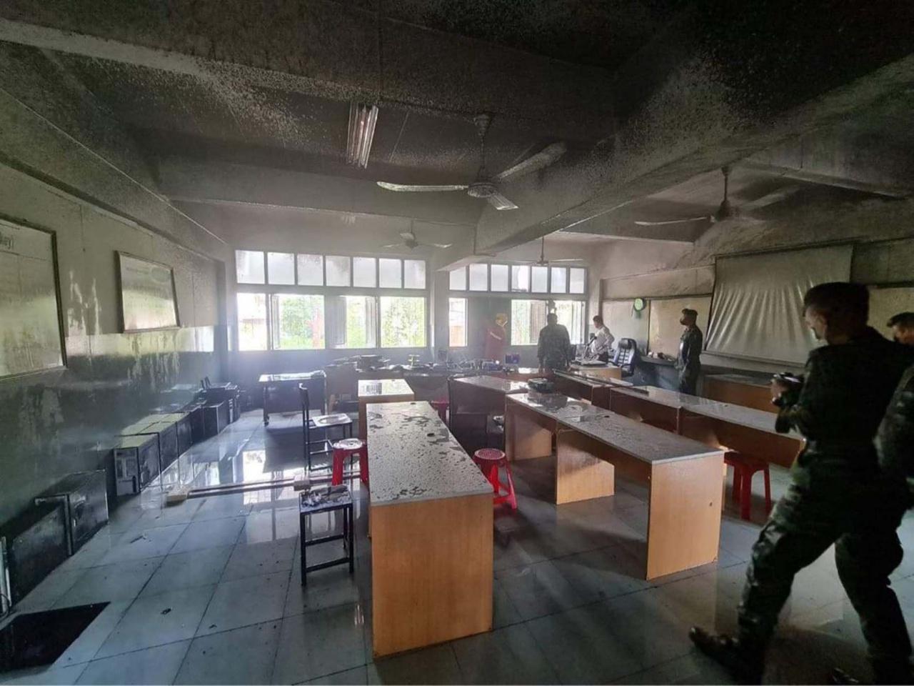 พ.ต.ท เฉลียว โมรี สว.สอบสวนสภ.ย่อย มข. กล่าวภายหลังตรวจที่เกิดเหตุว่า เจ้าหน้าที่ดับเพลิงได้สกัดไฟในที่เกิดเหตุได้ในเวลารวดเร็วและไม่ลุกลาม ความเสียหายจึงเกิดเพียงในห้องเรียนคอมพิวเตอร์เท่านั้น มูลค่าความเสียหายที่ทางโรงเรียนประเมินมูลค่ามาในเบื้องต้นประมาณ 300,000 บาท และสันนิษฐานว่า ไฟไหม้ครั้งนี้เกิดจากไฟฟ้าลัดวงจร ซึ่งได้ประสานกับเจ้าหน้าที่ ศพฐ.4 ขอนแก่นมาตรวจที่เกิดเหตุแล้วเช่นกัน.