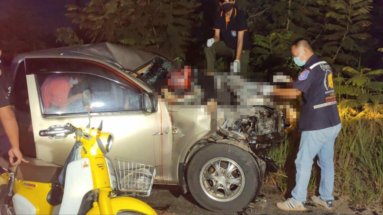 ที่เกิดเหตุเป็นทางโค้งถนน 2 ช่องทางวิ่งสวนกัน พบรถกระบะอีซูซุ ดีแมคซ์ สีบรอนซ์ทอง หมายเลขทะเบียน ผท 1048 อุดรธานี ชนกับรถจักรยานยนต์ฮอนด้า CBR 650F สีเทาดำ หมายเลขทะเบียน 1 กส 155 อุดรธานี สภาพพังเสียหายยับเยินทั้งสองคัน โดยรถกระบะมีรอยเฉี่ยวชนด้านหน้า กระจกและกระโปรงรถพังเสียหาย พบศพชายไม่ทราบชื่อ นามสกุล และที่อยู่ อายุประมาณ 30 ปี สวมหมวกกันน็อก คอหักเสียชีวิตติดอยู่บนกระโปรงหน้ารถ ห่างไปประมาณ 50 เมตร พบศพหญิงอายุ 30 ปีคอหักนอนเสียชีวิตอยู่กลางถนน ส่วนคนขับรถกระบะเป็นหญิงทราบภายหลังว่า นางอุไร ชาติวงษ์ อายุ 57 ปี ชาวบ้าน ต.โคกสะอาด อ.เมือง จ.อุดรธานี ได้รับบาดเจ็บสาหัส ส่วนผู้โดยสารเป็นหลานชื่อ ด.ช.อารีย์ พรมดวงสี อายุ 9 ขวบ รับบาดเจ็บ เจ้าหน้าที่นำส่งโรงพยาบาลศูนย์อุดรธานี