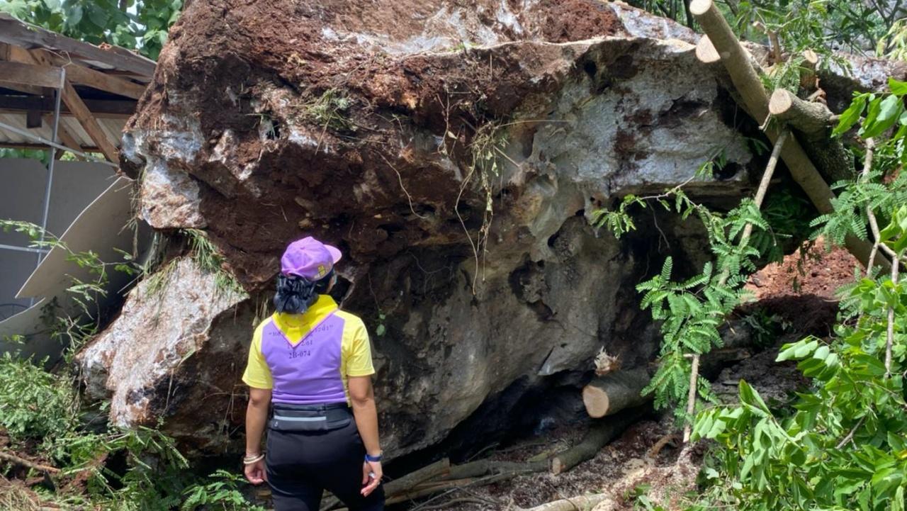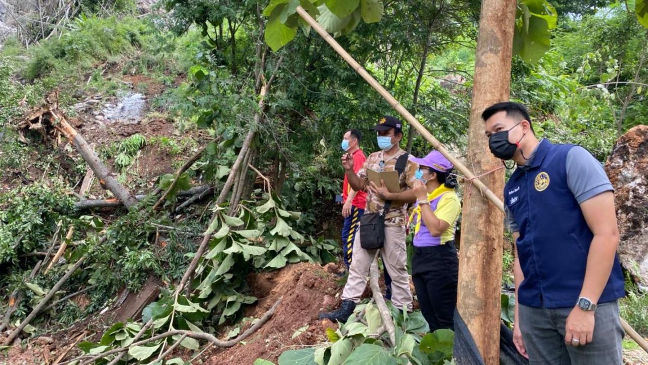 จากเหตุการณ์ เมื่อเวลา 07.00 น. วันที่ 9 ก.ย. 64 เกิดเหตุดินภูเขาถล่ม ก้อนหินขนาดใหญ่ 3 ก้อนสไลด์ตัวลงมาทับอาคารที่พักสงฆ์ซึ่งใช้เป็นศูนย์พักคอยและโรงพยาบาลสนาม ยังดีที่ผู้ที่เข้าพักอยู่กว่า 10 ราย เดินทางไปตรวจคัดกรองโควิด-19 ที่โรงพยาบาลภักดีชุมพลตั้งแต่เวลา 06.00 น.