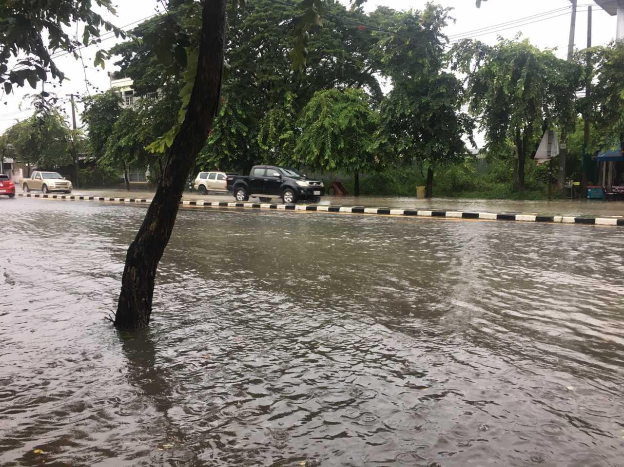 ต่อมาเวลา 13.00 น. ผู้สื่อข่าวรายงานบรรยากาศในพื้นที่จังหวัดอุบลราชธานี ได้มีฝนตกหนักถึงหนักมากเป็นระยะจากอิทธิพล พายุโซนร้อน "เตี้ยนหมู่" ตั้งแต่ช่วงเช้ามืดเรื่อยมาร่วม 10 ชั่วโมงแล้ว ส่งผลให้หลายพื้นที่เกิดน้ำท่วมขังรอการระบายโดยเฉพาะในพื้นที่อำเภอเมืองอุบลราชธานี และ อ.วารินชำราบ ถนนสายสำคัญทั้ง ถนนแจ้งสนิท, ถนนชยางกูร หน้าแมคโดนัลด์ อ.เมืองอุบลราชธานี และ ถนนกันทรลักษ์ หน้าห้างโลตัส อ.วารินชำราบ น้ำท่วมขังบนถนนบางจุดสูงถึง 50 ซม. รถเล็กสัญจรลำบากต้องหลีกเลี่ยงเส้นทาง