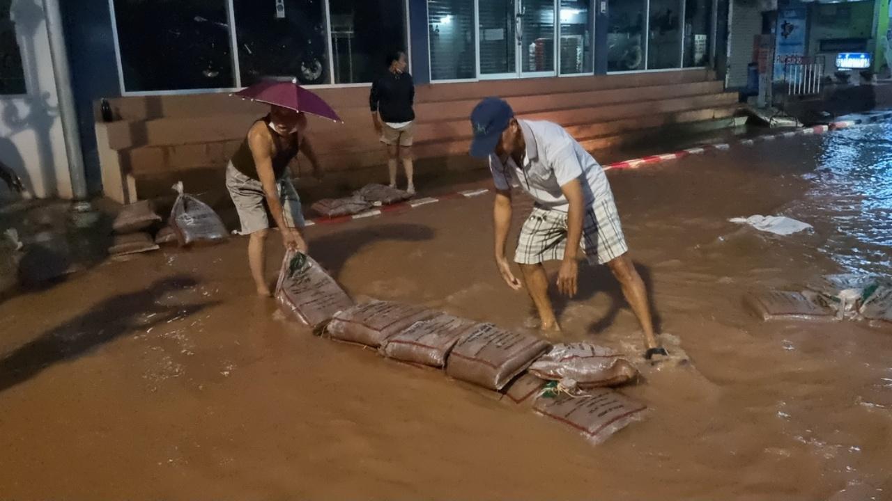 น้ำป่าทะลักท่วม อ.ด่านซ้าย จ.เลย ชาวบ้านไปเจอกระสอบทรายอุดรูท่อ เทศบาลอ้าง ไม่ให้น้ำไหลเข้าในตลาดเขตเศรษฐกิจ ต้องช่วยกันรื้อออก