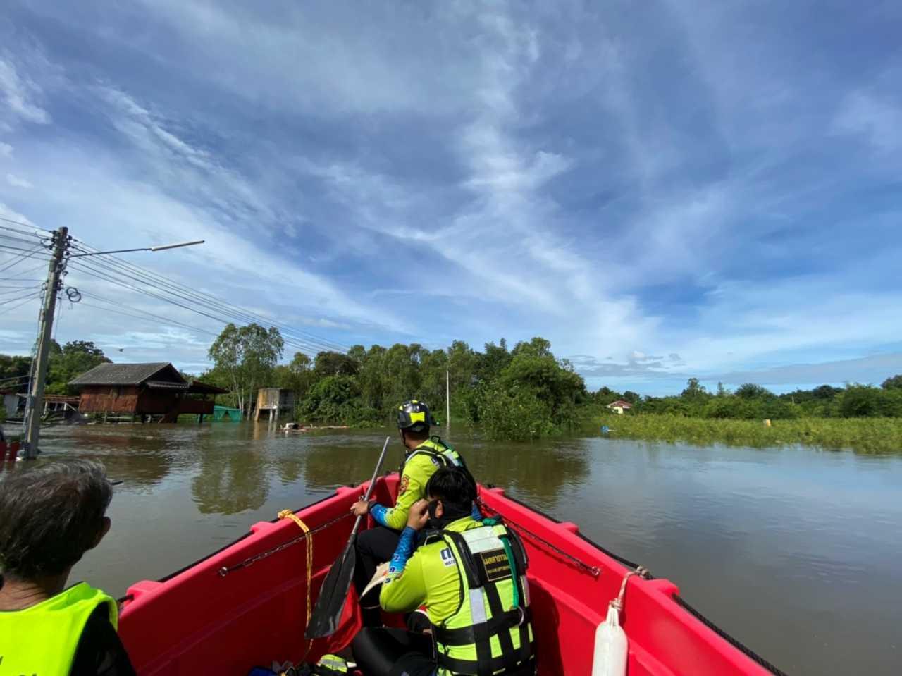 อาสาสมัครกู้ภัยเมตตาธรรม จ.กาฬสินธุ์ กู้ภัยอุดมเวทย์ จ.ร้อยเอ็ด กู้ภัยสว่างยโสธร ได้เร่งประชาสัมพันธ์เรียกให้ประชาชนที่อยู่ริมน้ำ ขึ้นยังที่สูง พร้อมกับมีการทยอยขนย้ายผู้ป่วยติดเตียงออกมายังจุดปลอดภัย และยังมีประชาชนที่ติดอยู่ในบ้านอีกกว่า 100 หลังคาเรือน เจ้าหน้าที่กำลังเร่งเข้าช่วยเหลือ
