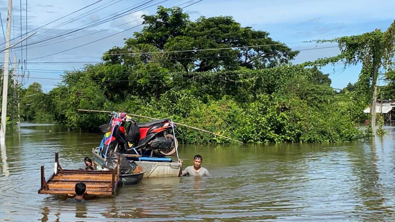แม่น้ำชีเอ่อล้นตลิ่งไหลเข้าท่วมบ้านหนองปลาเข็ง ต.ท่าพระ อ.เมืองขอนแก่น กู้ภัยเร่งช่วยเหลือชาวบ้านนับร้อยครัวเรือน ขนย้ายสิ่งของขึ้นที่สูง และอพยพออกไปอยู่ที่ปลอดภัยหลังน้ำท่วมสูง 2 เมตร