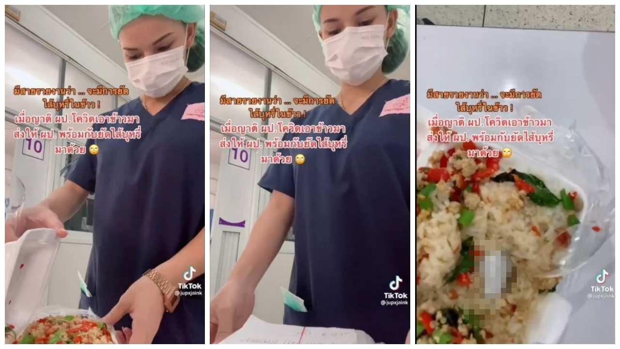กรณีเมื่อวันที่ 6 ตุลาคม 2564 ได้มีผู้ใช้ TikTok ชื่อว่า @Ju’px Jaink ได้โพสต์คลิป ขณะที่เปิดดูกล่องข้าวของผู้ป่วย หลังมีคนแจ้งว่าญาติของผู้ป่วยโควิด-19 รายนี้ได้ซื้อบุหรี่และยัดใส่ภายในกล่องข้าว เพื่อส่งต่อให้ผู้ป่วย พร้อมกับได้ระบุข้อความว่า ข้าวผัดกะเพรายัดไส้บุหรี่ #อย่าหาทำ #ผู้ป่วยโควิด