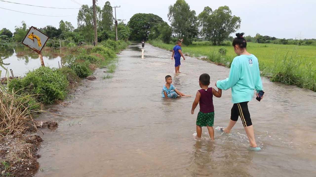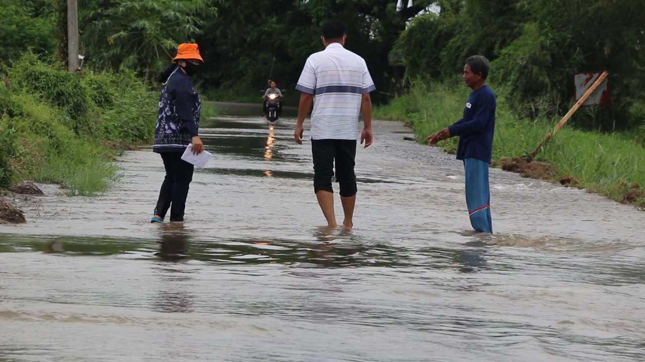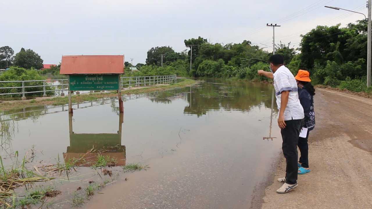 นายณัฐพงศ์ เดชแพง นายกเทศมนตรีตำบลบึงเนียม อ.เมือง จ.ขอนแก่น พาผู้สื่อข่าวเดินสำรวจในจุดที่ถูกน้ำท่วมถนน ซึ่งพบว่าน้ำไหลเร็ว กัดเซาะผิวถนน บางช่วงเริ่มเป็นหลุมลึก นายกองค์การบริหารส่วนตำบลบึงเนียม กล่าวว่า พื้นที่ตำบลบึงเนียม มีทั้งหมด 12 หมู่บ้าน มีหมู่บ้านที่เสี่ยงต่อการถูกน้ำท่วมคือ บ้านปากเปือย บ้านบึงสวาง บ้านคุยโพธิ์ บ้านบึงใคร่นุ่น ประมาณ 400 หลังคาเรือน ส่วนมวลน้ำที่เอ่อล้นท่วมในครั้งนี้เป็นน้ำพอง ที่เพิ่มปริมาณมากขึ้น เพราะเขื่อนอุบลรัตน์ระบายน้ำเพิ่มมากขึ้น