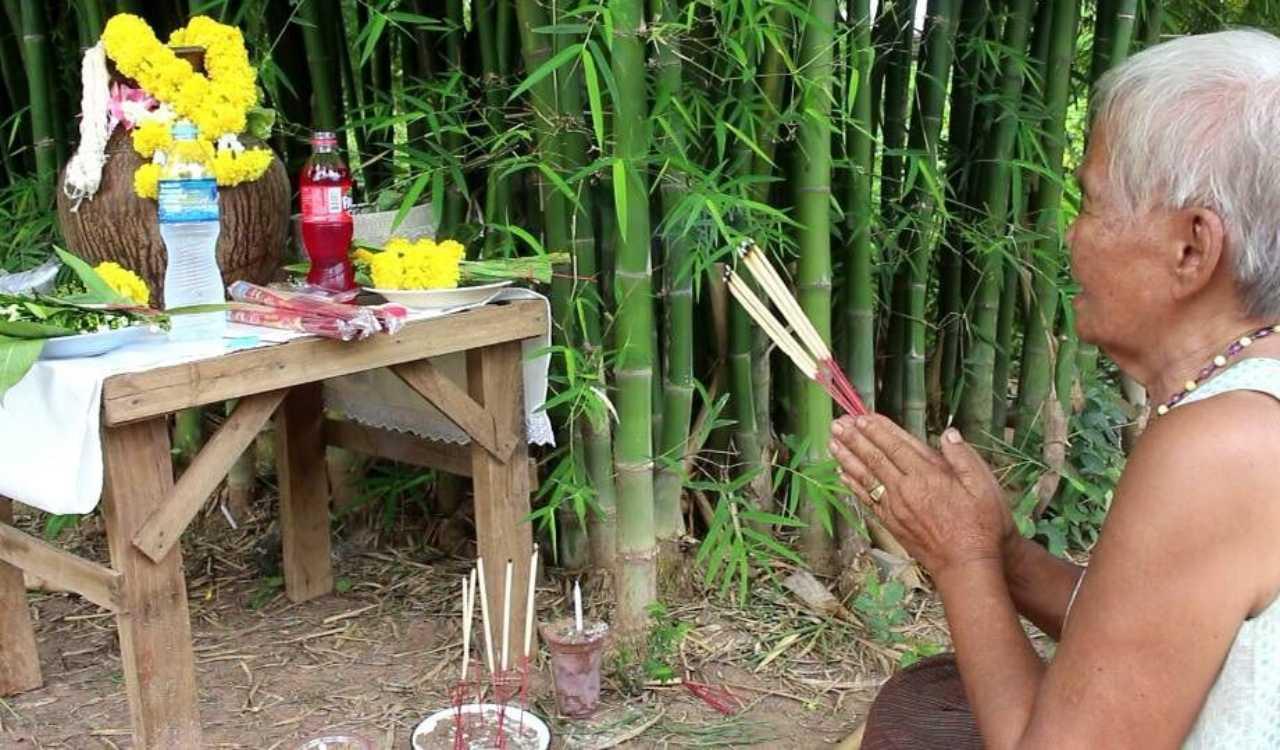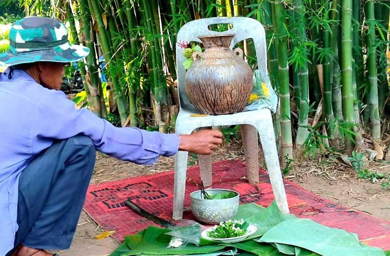 ด้าน นางดวงธนพร โลนะลุ อายุ 52 ปี เป็นแม่หมอร่างทรงที่ชาวบ้านนับถือ บ้านเลขที่ 16 หมู่ที่ 9 ตำบลยางสว่าง อำเภอรัตนบุรี จ.สุรินทร์ ได้เดินทางมาทําพิธีขอโชคขอลาภกับไหโบราณนี้ด้วย หมอร่างทรงได้จุดธูปเทียนทําพิธี และเขียนตัวเลขในกระดาษให้ผู้สื่อข่าวดูเป็นตัวเลข 689 ส่วนชาวบ้านที่มาร่วมพิธีนั้นต่างนั่งลุ้นมองหาตัวเลขในไหโบราณใบนี้ หลายๆ คนต่างมองเห็นตัวเลขตัวเดียวกัน คือ เลข 9 กับ เลข 8 และ เลข 3.