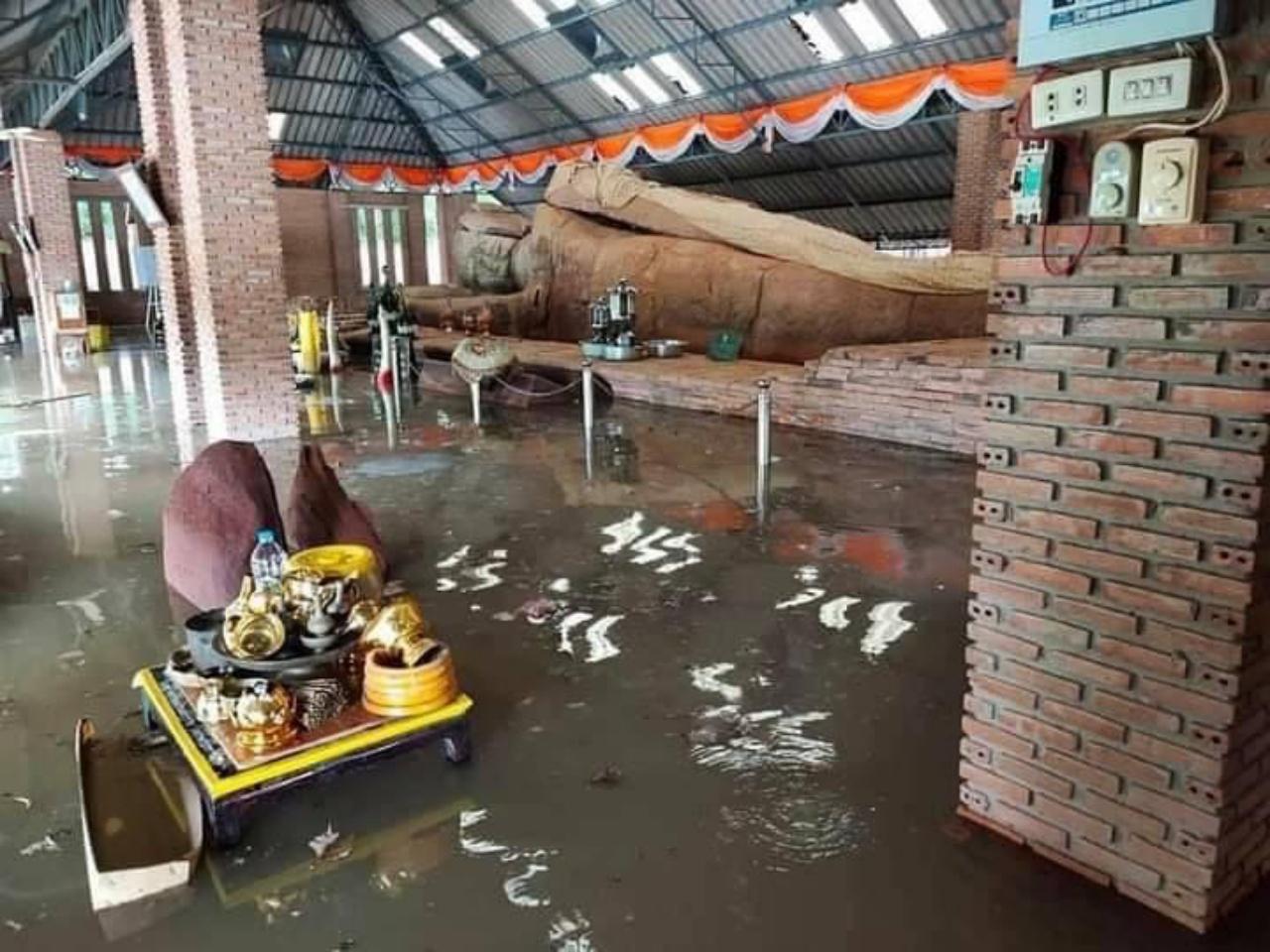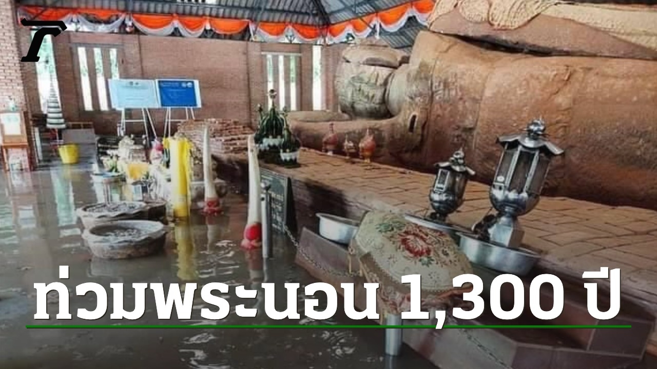 สถานการณ์น้ำท่วม จ.นครราชสีมา น้ำป่าไหลหลากเข้าท่วมองค์พระนอน สมัยทวารวดี อายุ 1,300 ปี ใหญ่ที่สุดในประเทศไทย เกือบมิดองค์พระ ขณะที่บ้านเรือนกว่า 160 หลังถูกน้ำท่วมสูงกว่า 1 เมตร