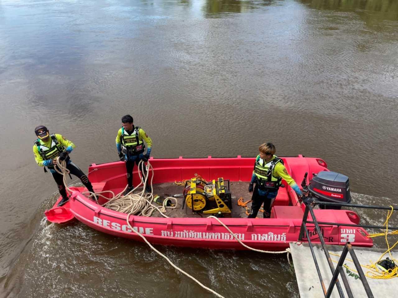 ทีมกู้ภัยร้อยเอ็ด เข้าช่วยเก็บกู้แพอาหารที่ติดคาตอม่อสะพานข้ามแม่น้ำชี บนถนนสายกมลาไสย-จังหาร ที่บ้านแซงแหลม อ.จังหาร หลังลอยไปกับกระแสน้ำที่ไหลเชี่ยว ใช้ 10 คนลากกลับฝั่งได้ในเวลา 3 ชั่วโมง
