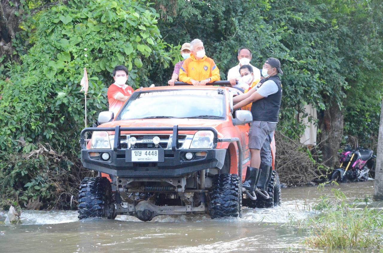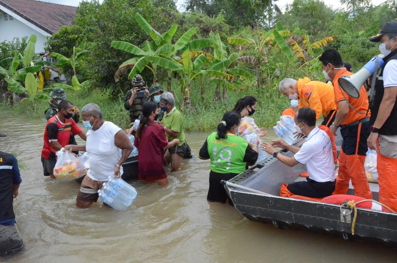 ทั้งนี้ได้มอบถุงน้ำใจที่วัดกุดเวียน ต.บุ่งขี้เหล็ก , ต.โคราช , ต.กุดจิก , ต.โนนค่า , ต.สูงเนิน และ ต.นากลาง รวม 300 ชุด และไปยังบ้านคนชุม ต.ปรุใหญ่ อ.เมืองฯ นั่งเรือท้องแบนออกเยี่ยมผู้ประสบอุทกภัยมอบถุงน้ำใจที่อพยพมาพักพิงอยู่ที่วัดคนชุม และออกไปในพื้นที่ช่วยผู้ประสบภัยน้ำท่วมในเขตอำเภอเมือง เริ่มตั้งแต่บ้านคนชุม ต.ปรุใหญ่ วัดหมื่นไวย ต.หมื่นไวย ชุมชนหลังโรงพยาบาลเซนต์แมรี่ที่ขณะนี้น้ำยังท่วมหนักระดับ 60 ซม.-1 เมตร และวัดศาลาลอย รวมถุงน้ำใจ 500 ชุดและน้ำดื่ม โดยทางศูนย์ฅนโคราชรักจริงไม่ทิ้งกันเหมือนเป็นกองกำลังเฉพาะกิจไปกอบกู้สถานการณ์น้ำท่วมเพื่อช่วยเหลือพี่น้องประชาชน จ.นครราชสีมา ในการร่วมแรงร่วมใจกันสู้วิกฤติน้ำท่วมสามารถกู้พระนอนหินทราย อายุ 1,300 ปี ที่สูงเนิน และเจดีย์สถูปเก็บอัฐิคุณย่าโม ที่วัดศาลาลอย ที่จมได้นำเสร็จ เพราะสองแห่งเป็นโบราณสถานที่ศักดิ์สิทธิ์ของชาวโคราช โดยความร่วมมือร่วมใจกันที่สามารถผ่านพ้นไปได้ เป็นตัวอย่างหนึ่งของความรักความสามัคคี ในการแก้ไขปัญหา