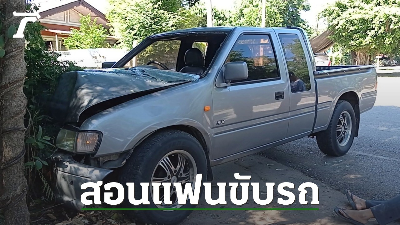 หนุ่มพิมาย กำลังหัดขับรถ โดยมีแฟนสาวนั่งข้างคอยเป็นครูสอน ด้วยความเป็นมือใหม่ ถึงทางโค้งเกิดตกใจและหักพวงมาลัยไม่ทัน พุ่งชนต้นสะเดาเข้าอย่างจัง บาดเจ็บทั้งคู่ยังดีที่ไม่เป็นอะไรมาก