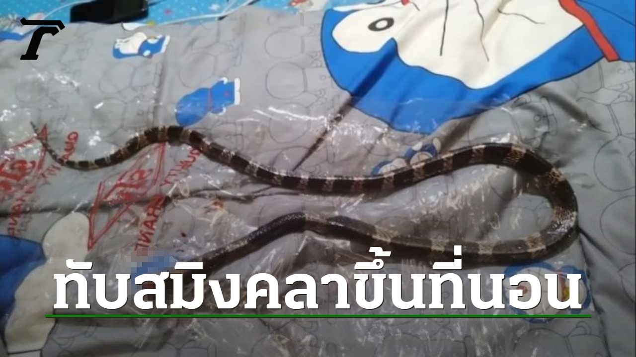 สาวเมืองสุรินทร์ เผยนาทีระทึกงูทับสมิงคลา ที่มีพิษร้ายแรงเลื้อยเข้าที่นอนถึงสองครั้งโชคดีที่เห็นก่อน จังหวะเลื้อยผ่านขาลูกจะจะ เปิดผ้าห่มหยิบไม้ตีทัน ก่อนหน้าเคยกัดควายตายมาแล้ว 1 ตัว
